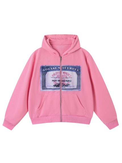 Women’S Vintage Dollar Bill Print Hooded Sweatshirt – Oversized Loose Fit Long Sleeve Zipper Jacket with Dollar Bill Design, Soft Casual Winter Warmth, Ladies Sweatshirts, Seasonal Fashion, Streetwear Style, Streetwear Lovers
