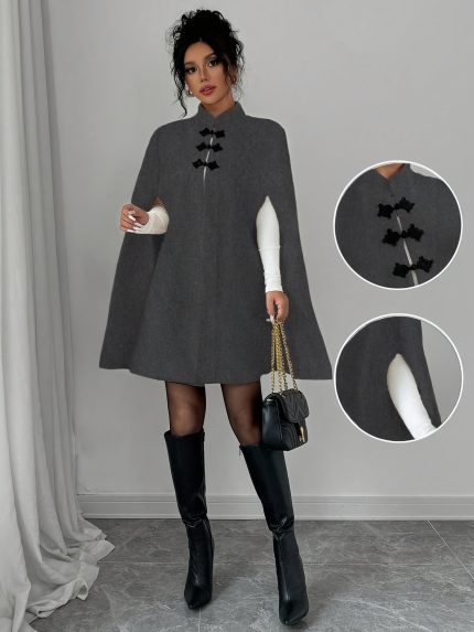 Elegant Chinese-Style Two-Tone Stand Collar Button Shawl, Cape Design. Thick Outerwear for Women in Autumn And Winter.