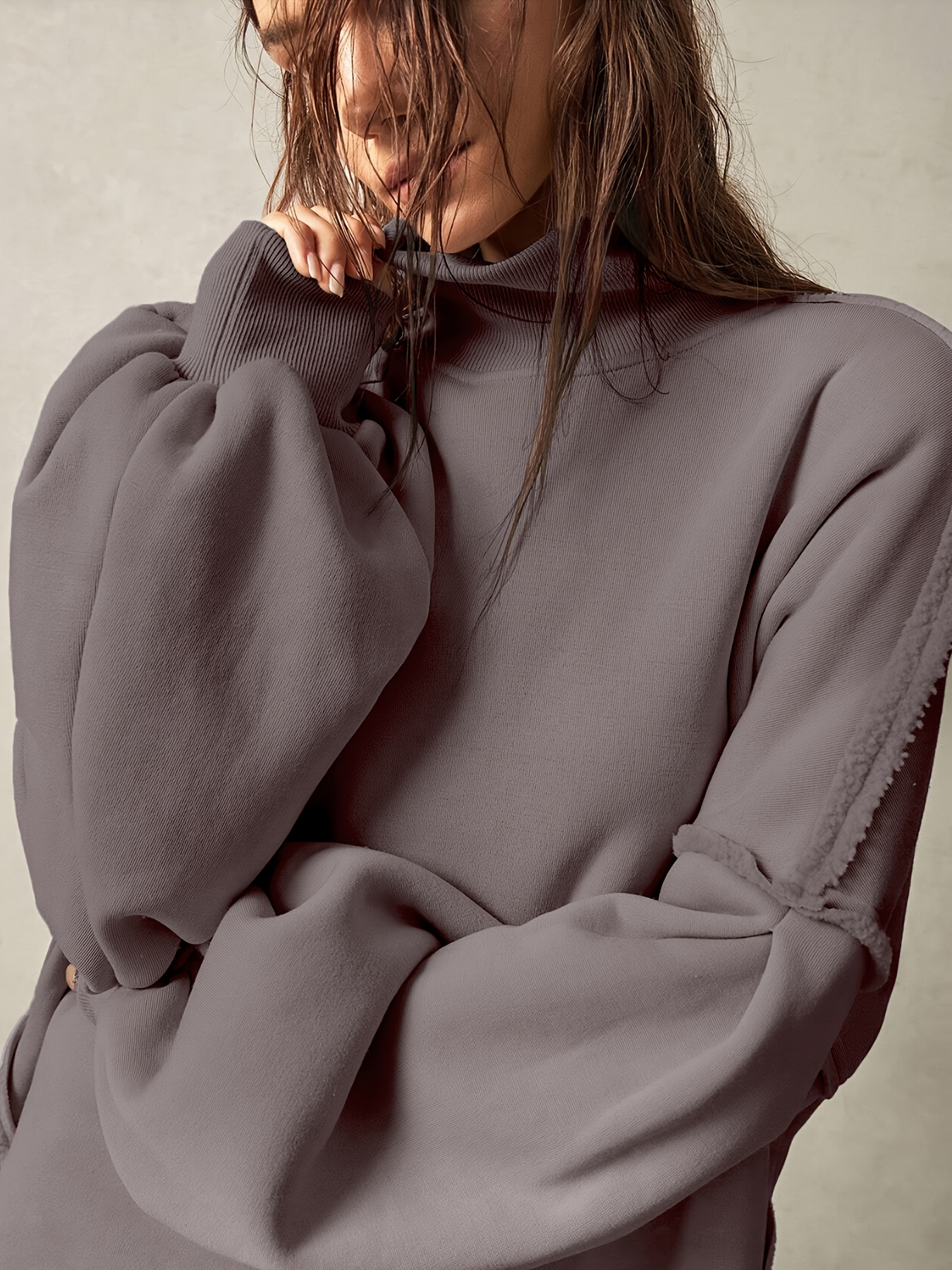 Home Women's Sweatshirts 2025 New Autumnu002FWinter Elegant Fashion High Neck Lantern Sleeve Sweatshirt for Women, Ideal Holiday Gift