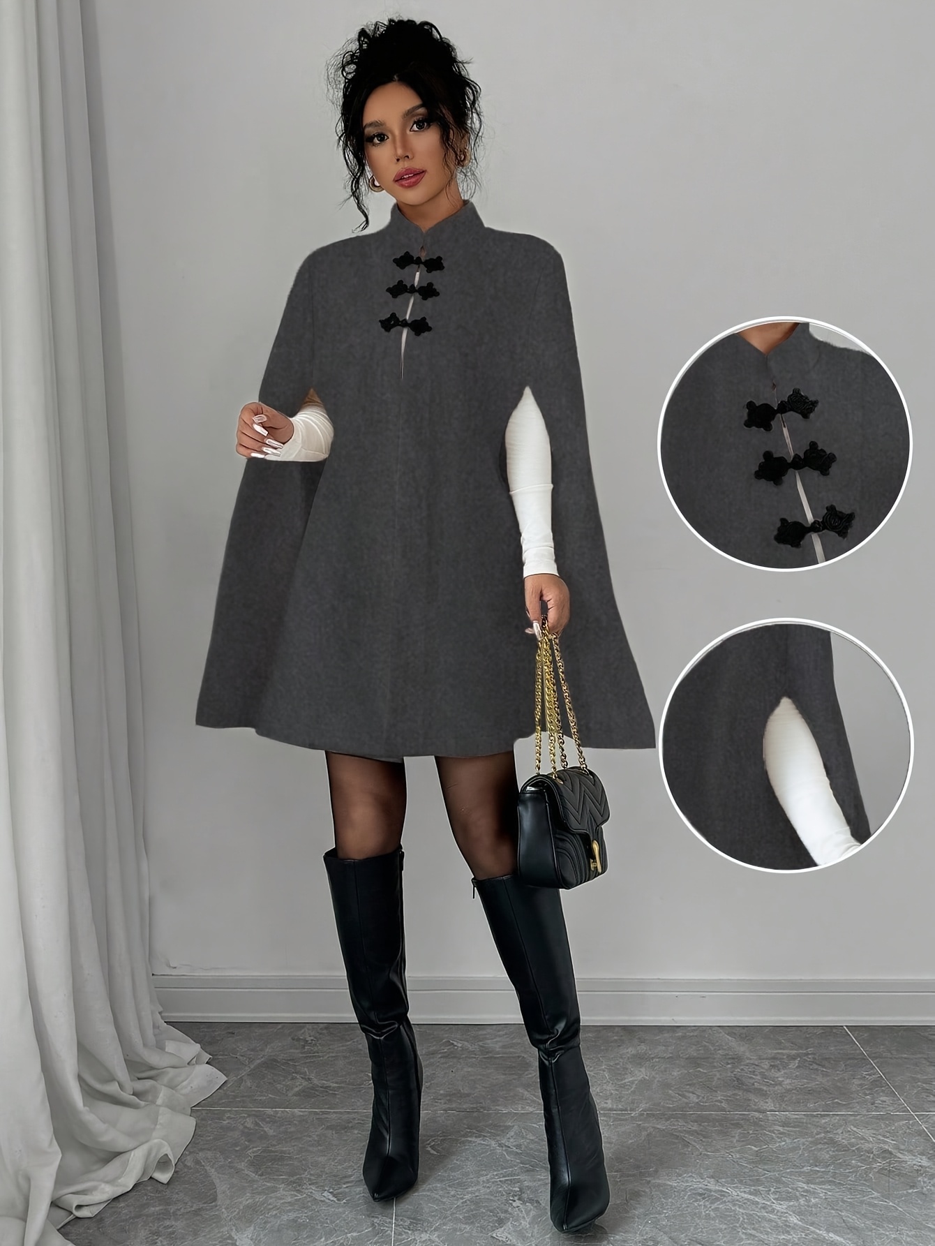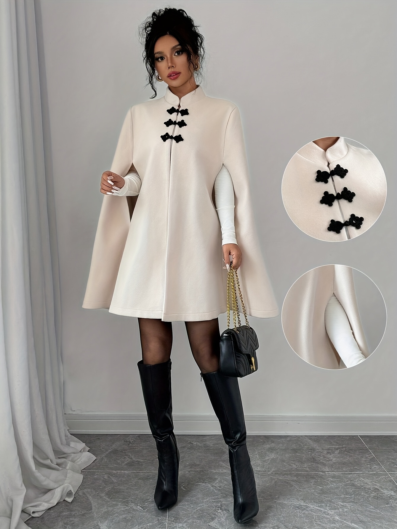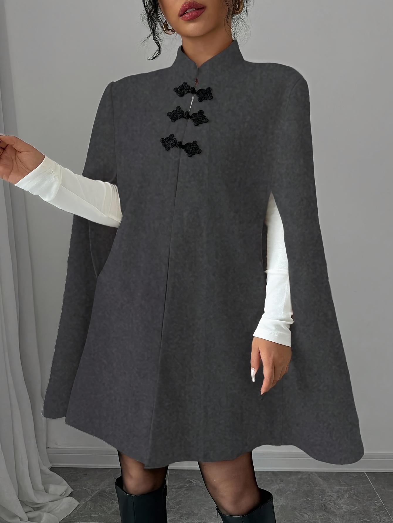 Home Women's Coats & Jackets Elegant Chinese-Style Two-Tone Stand Collar Button Shawl, Cape Design. Thick Outerwear for Women in Autumn And Winter.