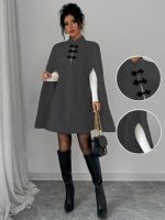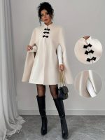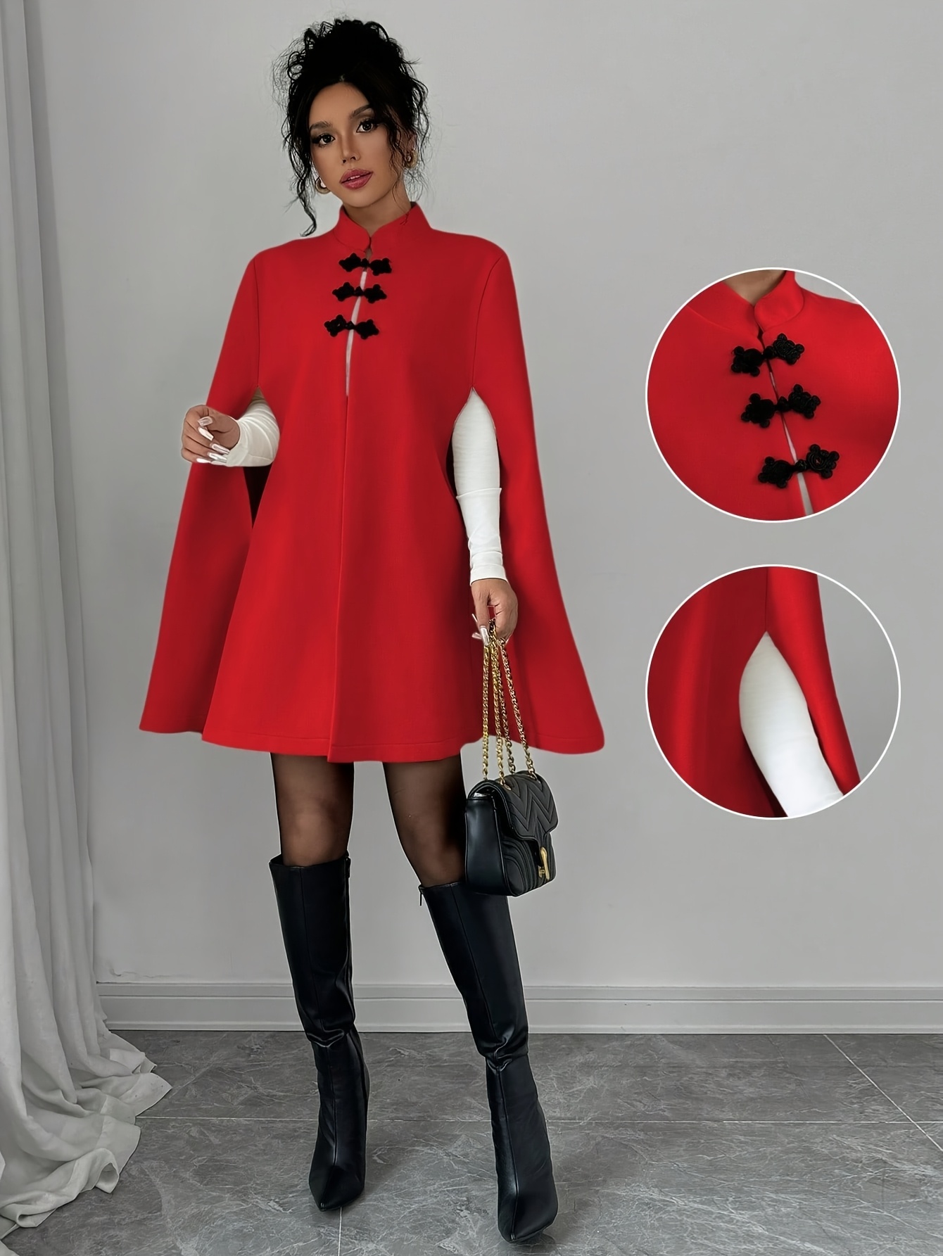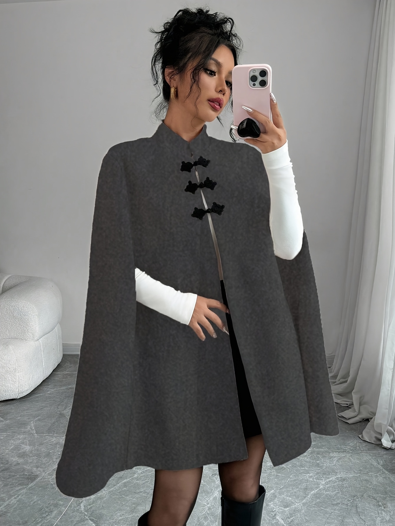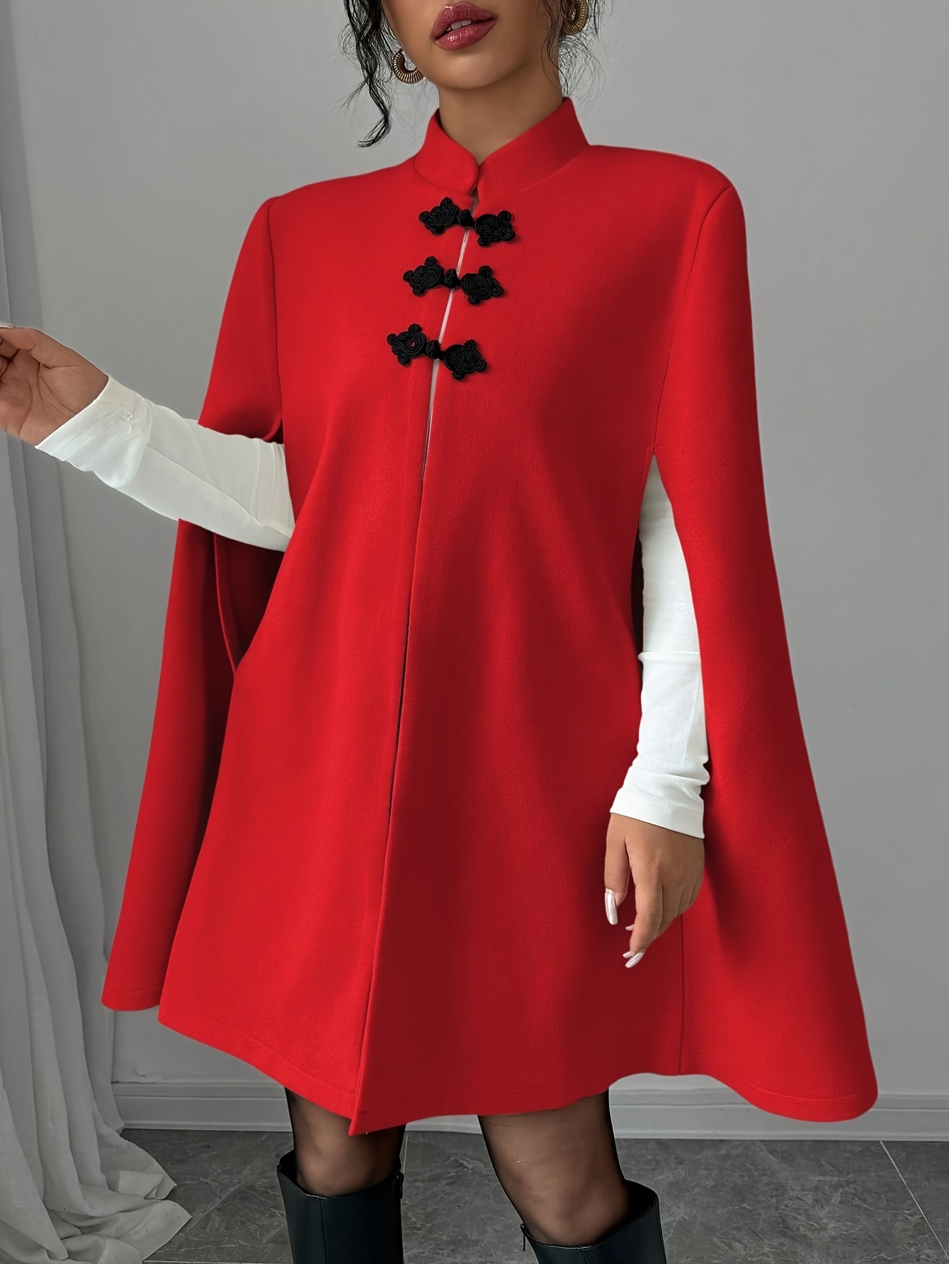 Home Women's Coats & Jackets Elegant Chinese-Style Two-Tone Stand Collar Button Shawl, Cape Design. Thick Outerwear for Women in Autumn And Winter.