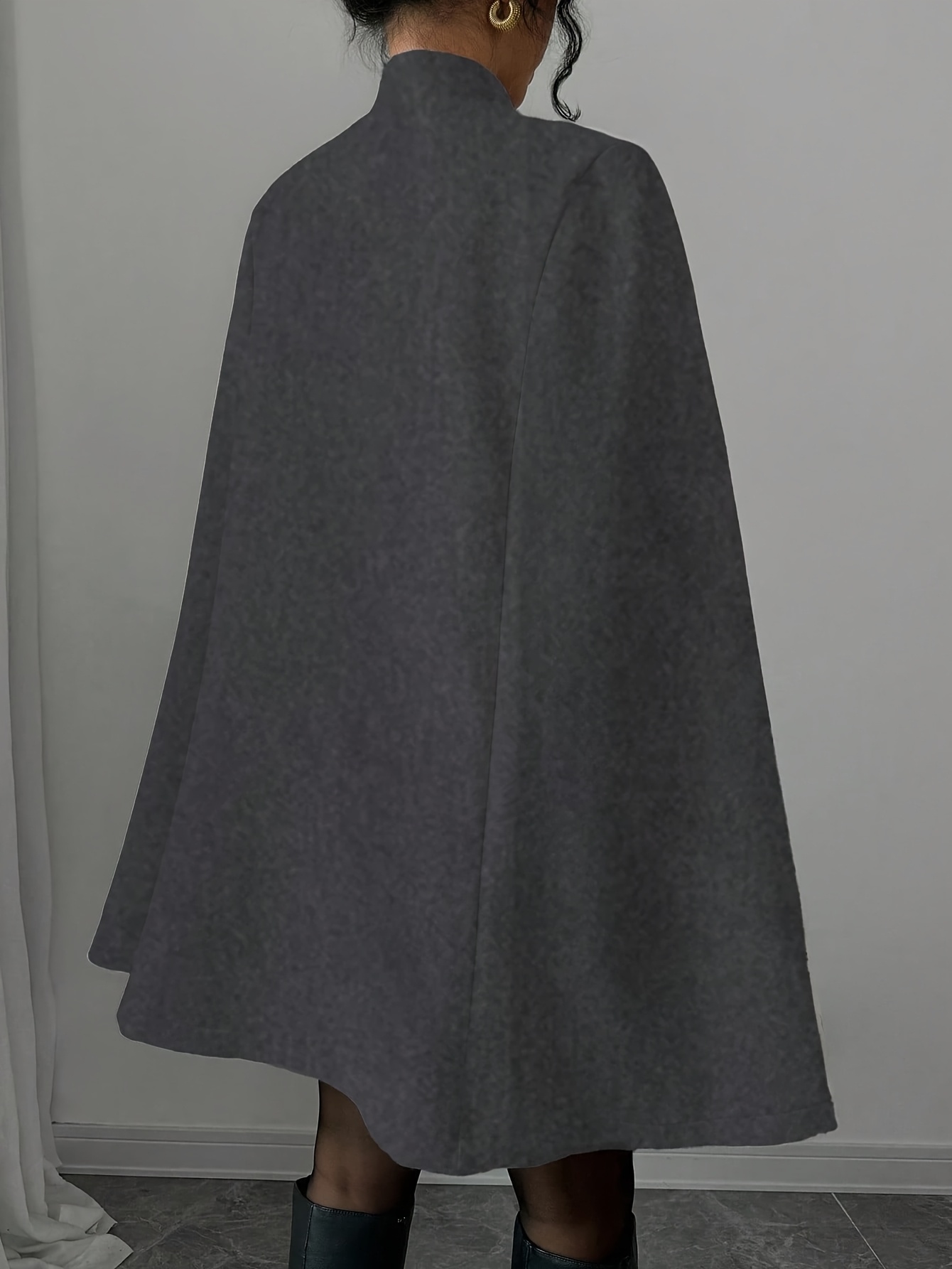 Elegant Chinese-Style Two-Tone Stand Collar Button Shawl, Cape Design. Thick Outerwear for Women in Autumn And Winter.