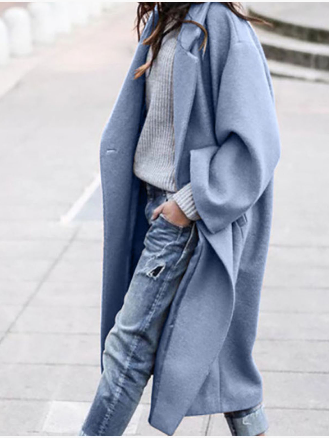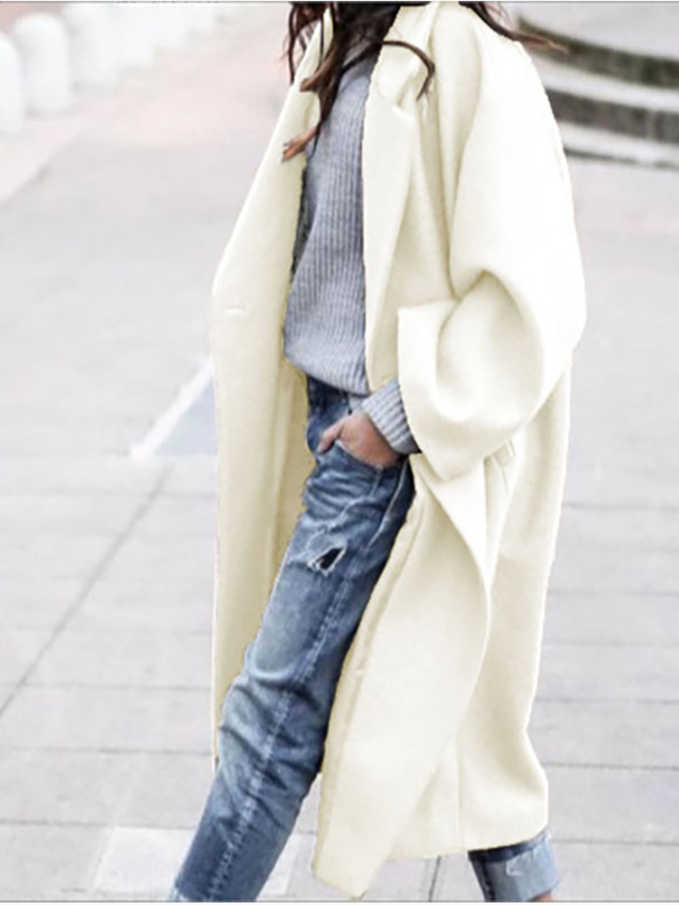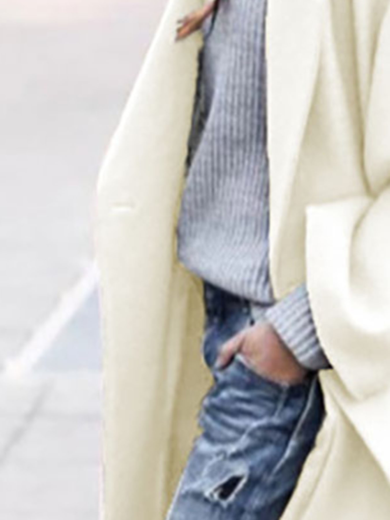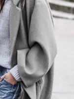 Home Women's Coats & Jackets Euro-Chic Extended-Length Tweed Coat for Women – Fall Winter 2025 Collection, Casual Chic Solid Color Coat with Pockets, Hand Wash Only, Available
