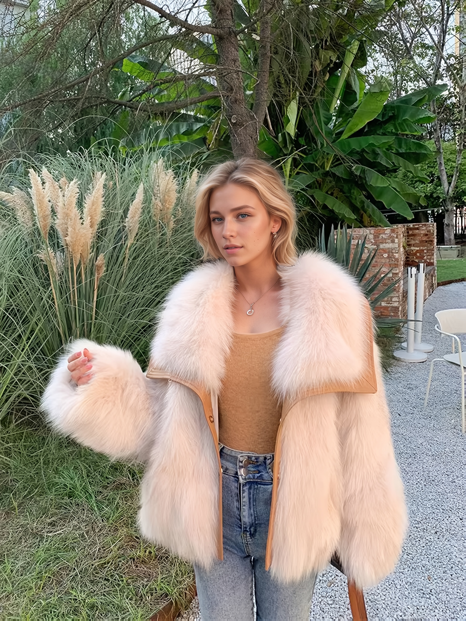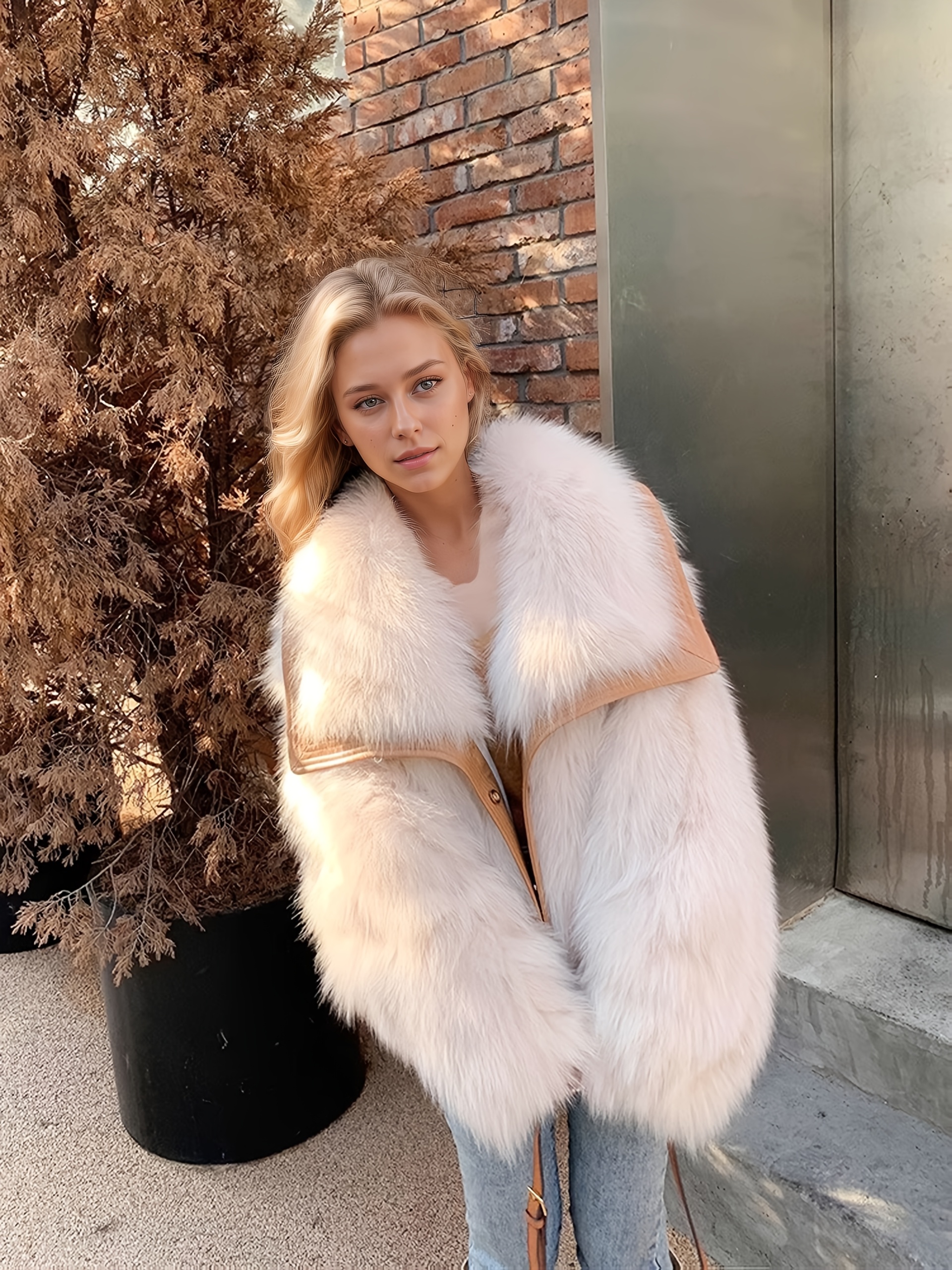 Home Women's Coats & Jackets Fashionable Faux Coat for Women | 2025 Autumnu002FWinter New Release, Elegant Loose Fit with Contrast Faux Leather, Long Sleeve, Single Breasted