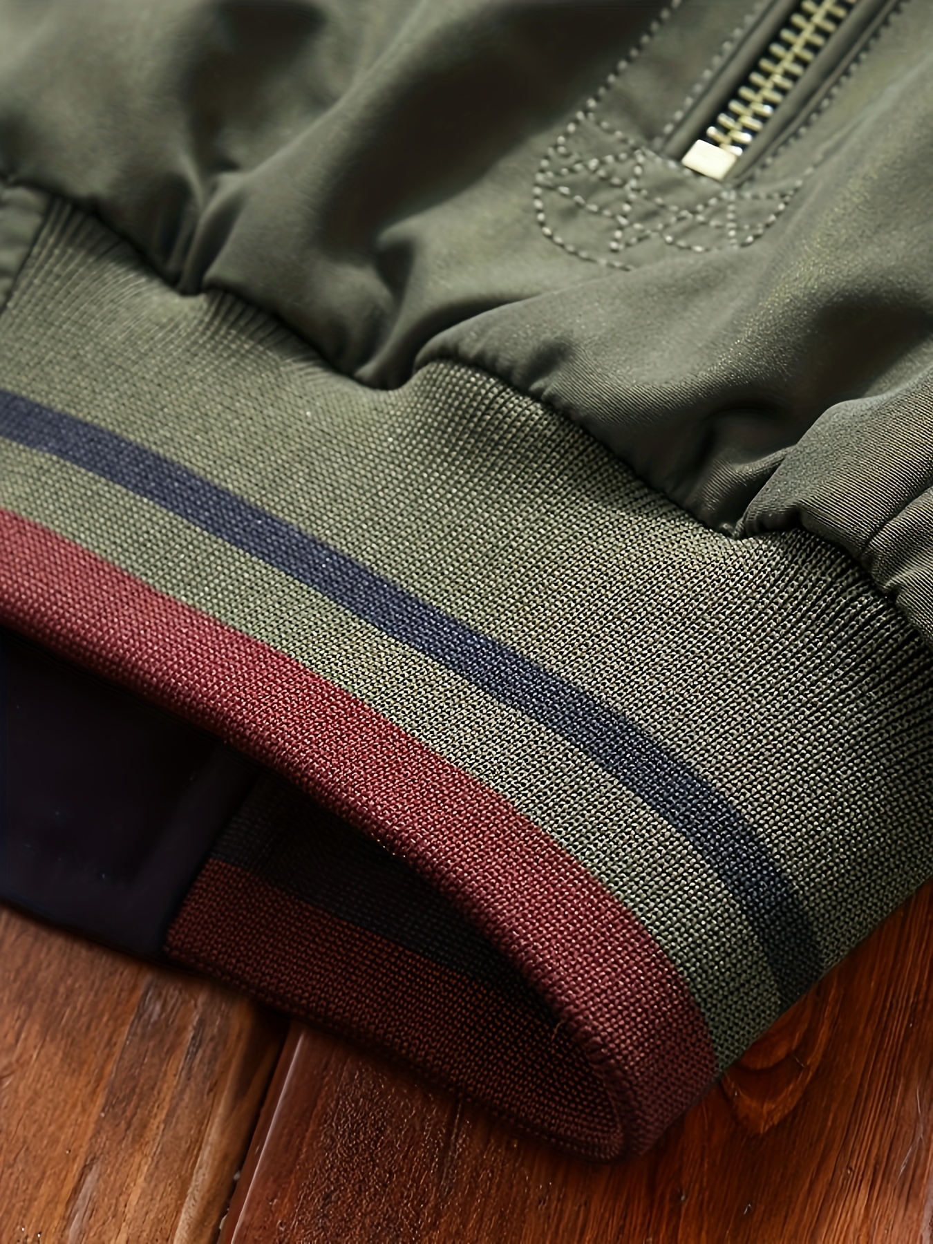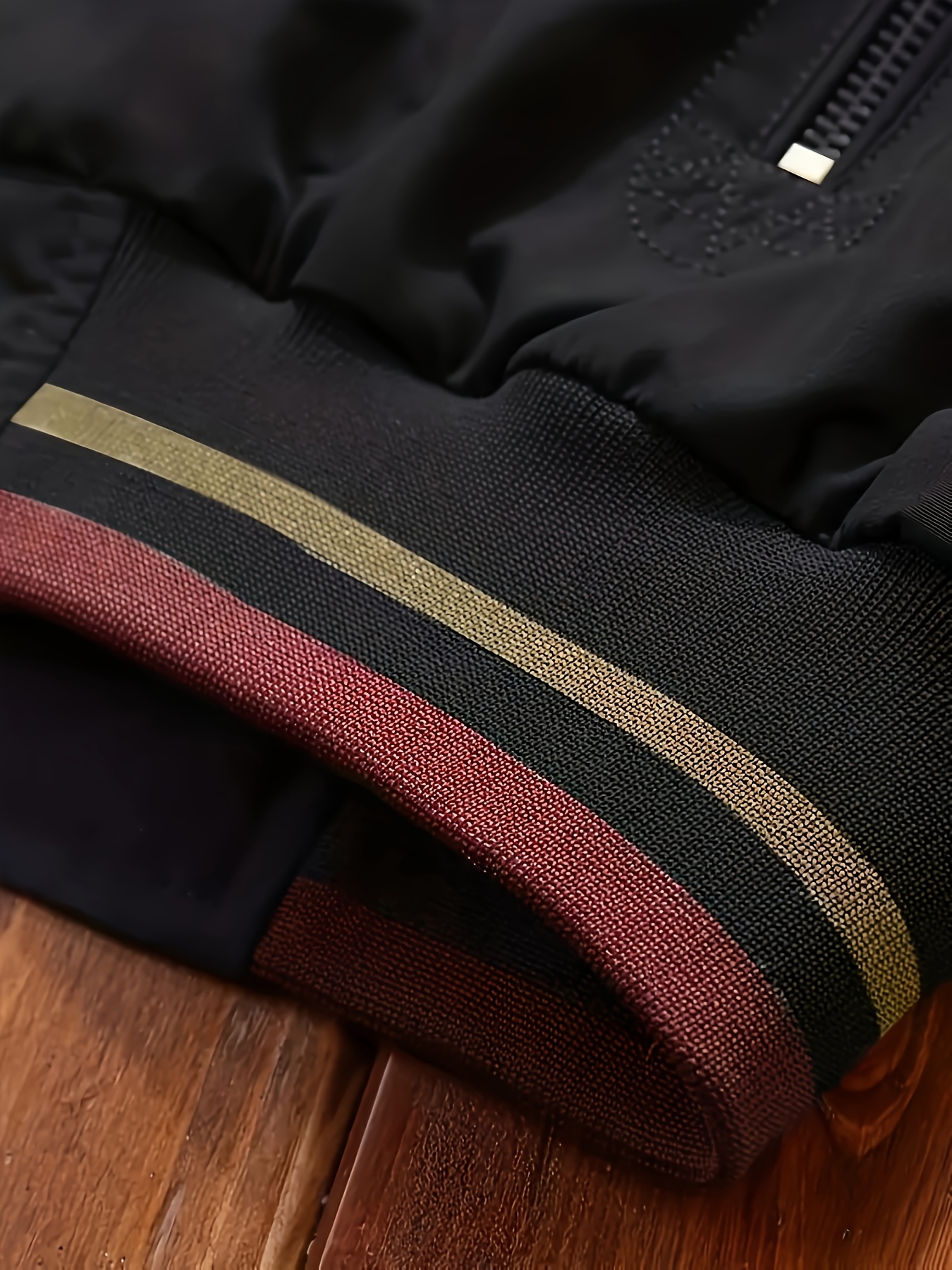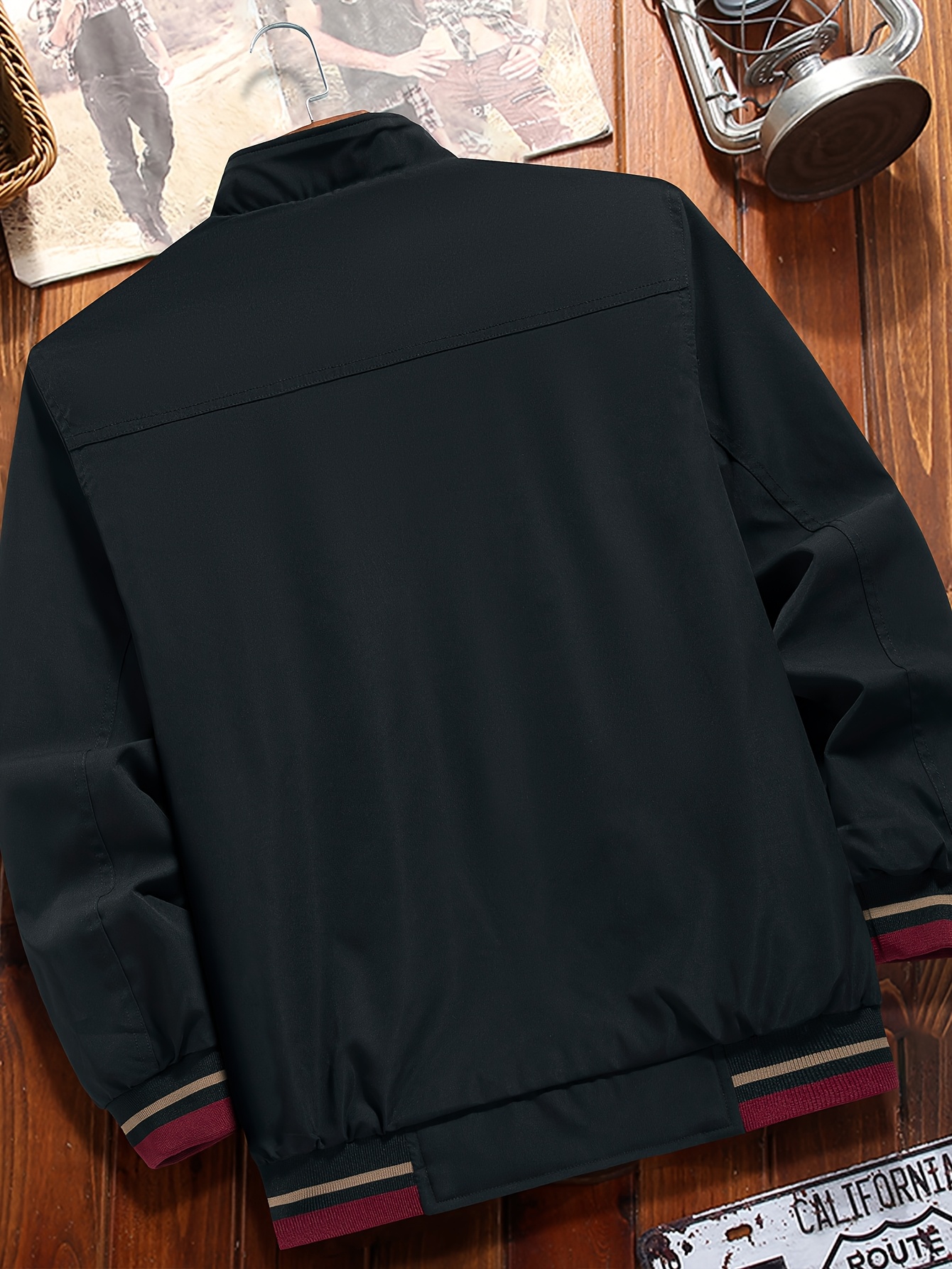 Men's Lightweight Casual Flight Jacket - Relaxed Fit Baseball Collar Springu002FFall Coat with Ribbed Hem & Zippered Pockets, Black Versatile Outerwear, Striped Interior Design | Durable Zipper Closure