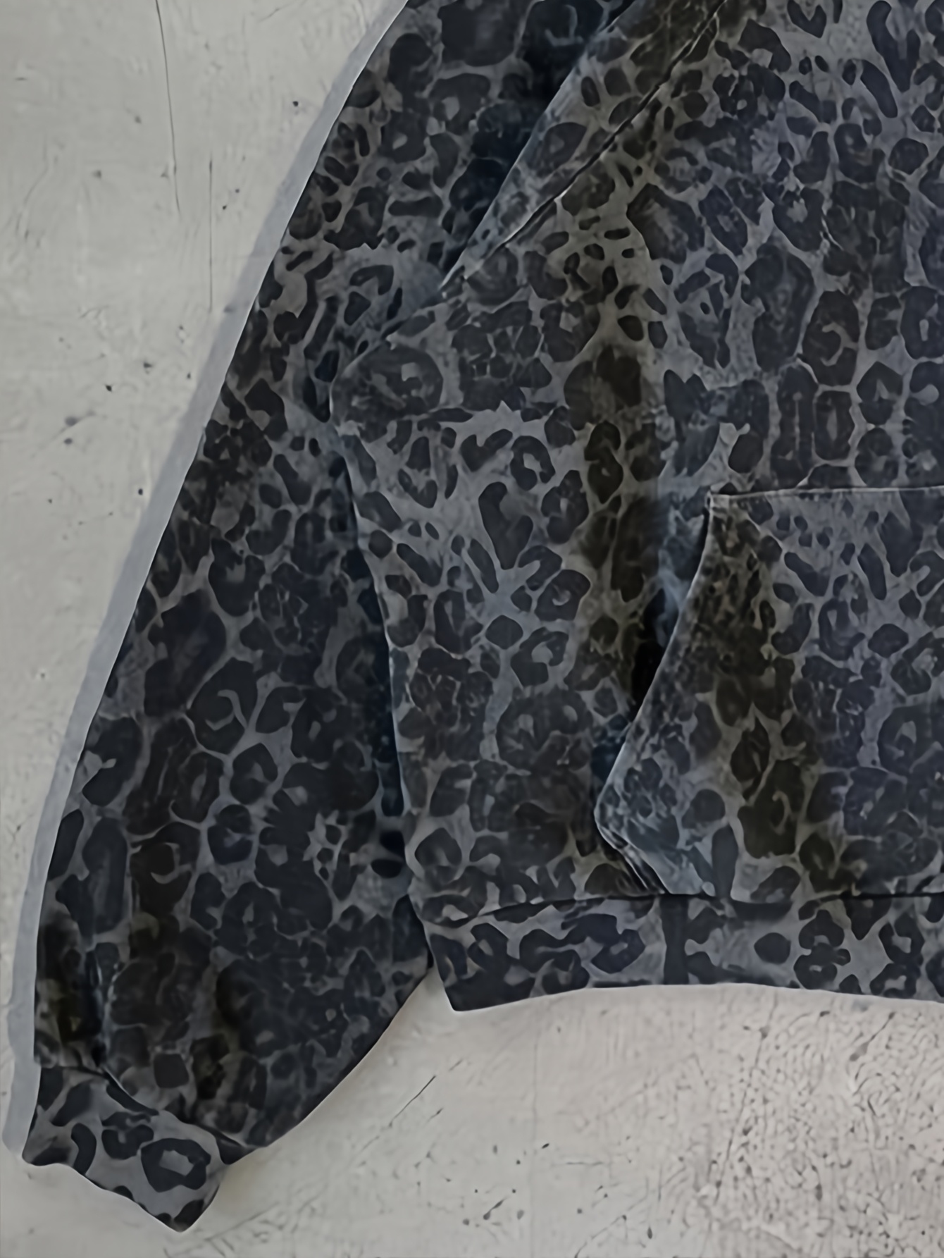 Home Women's Sweatshirts New Style Regular Fit Gothic Leopard Print Hoodie | Vintage Y2K Zip-Up Winter Sweatshirt for Couples, Casual Kangaroo Pocket, Autumn & Winter, Attract Wealth