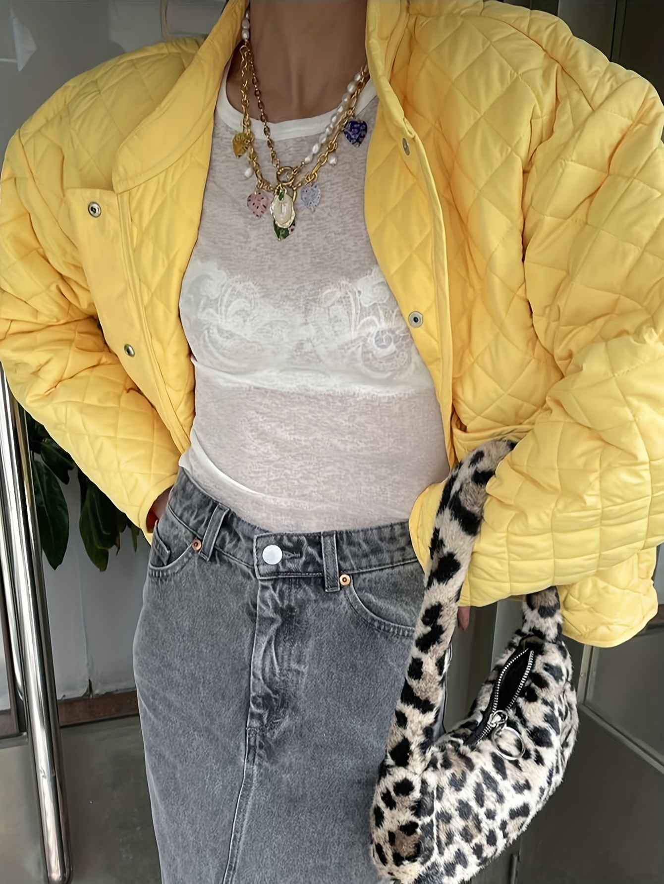 NS702 Women’s Autumn-Winter Solid Color Quilted Padded Coat