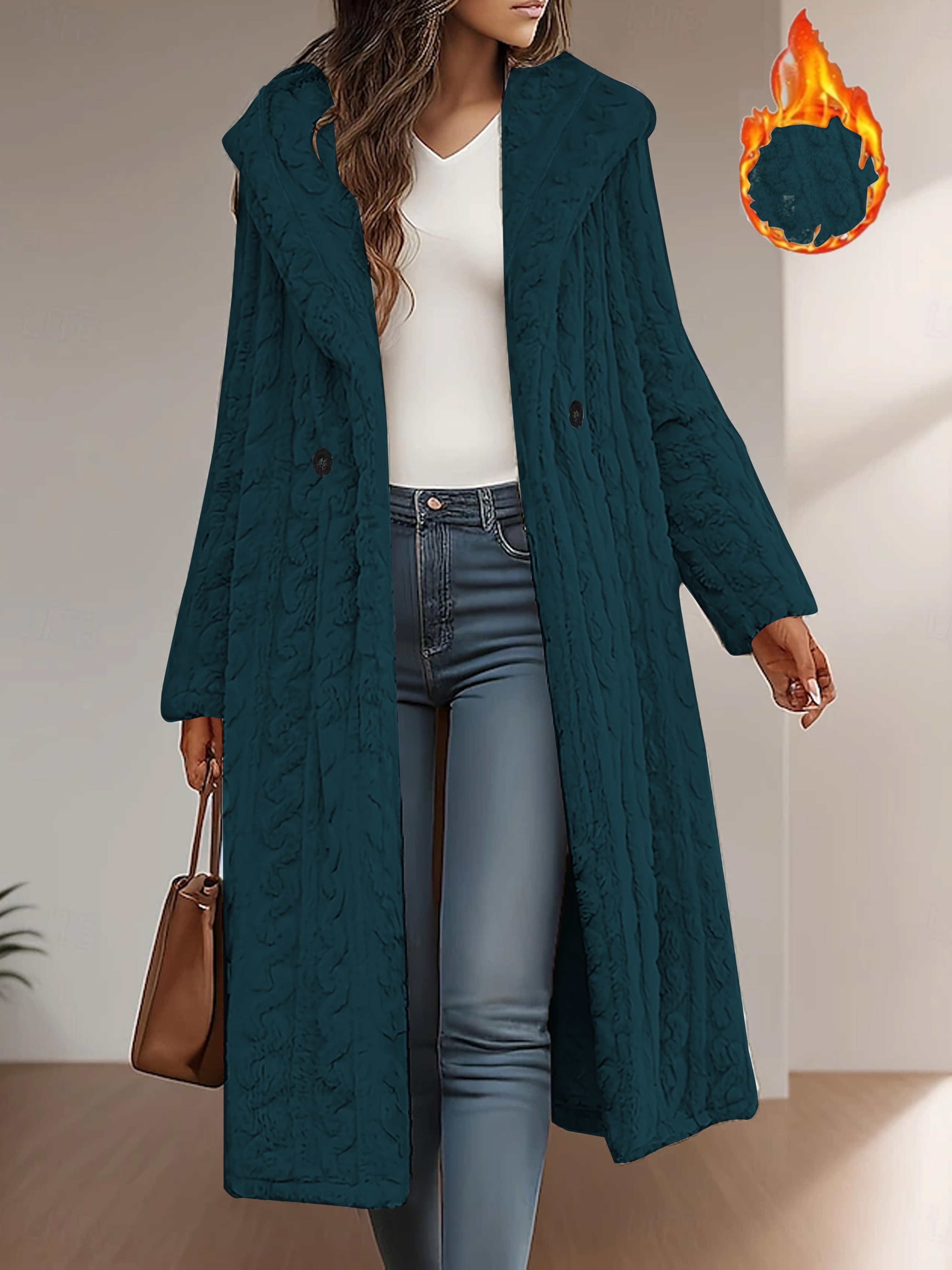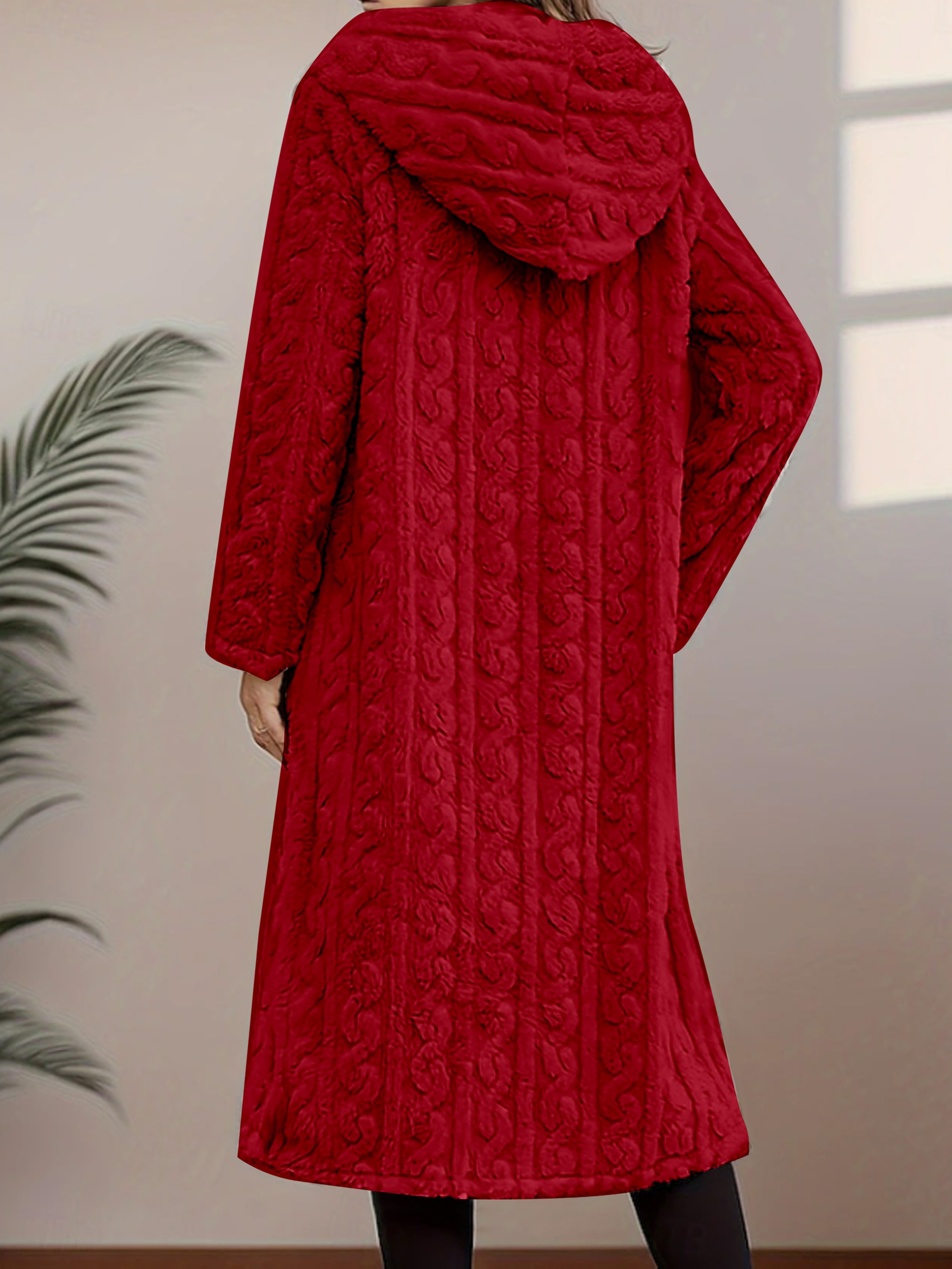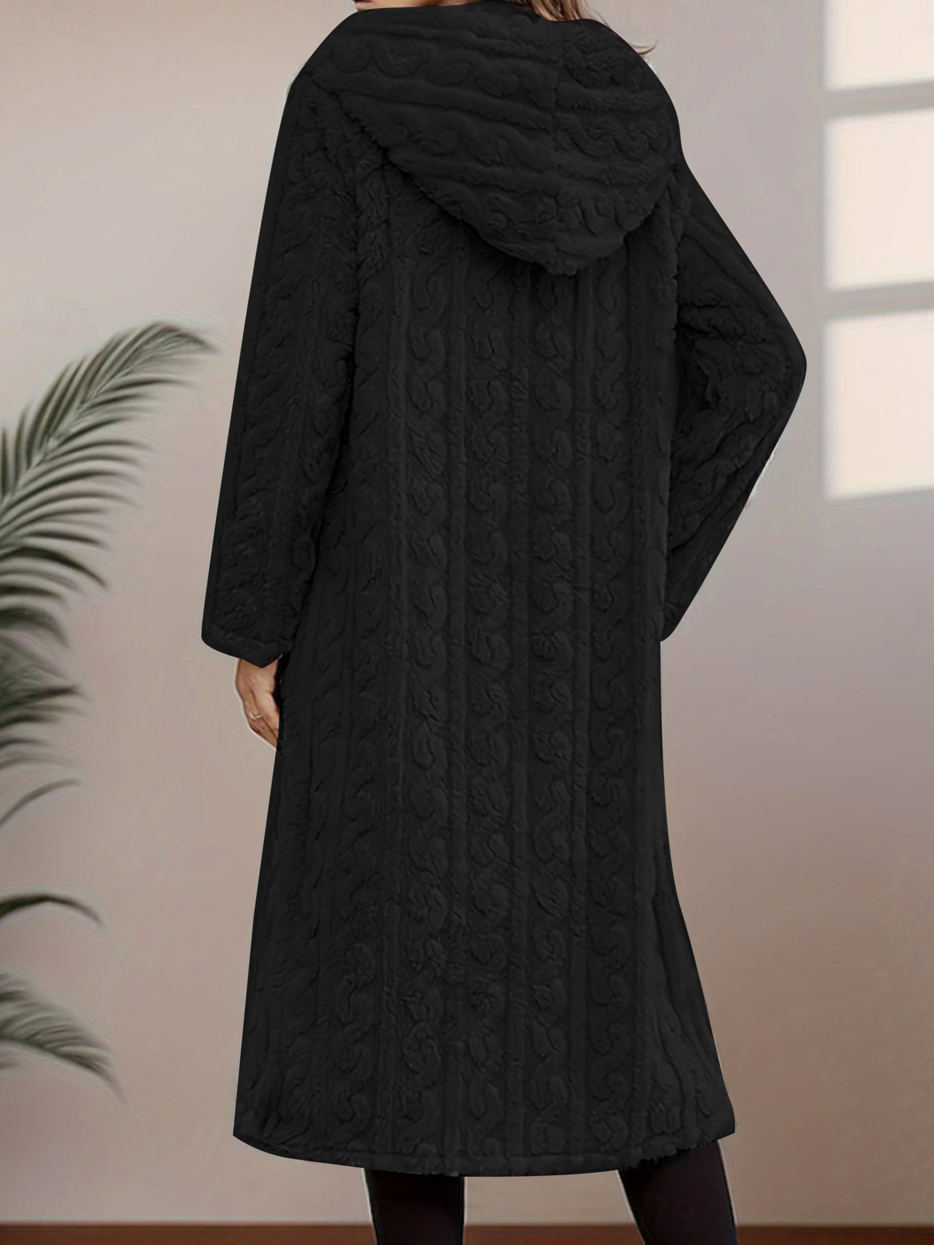 Warm Versatile Cardigan Fashion Long Hooded Solid Color Cardigan Coat, Thickened Plush Warm Versatile Commuter Outerwear for Autumn and Winter