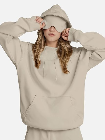 Windproof Winter Travel Hoodie with Eye Mask – Airplane Mode Sleep Cover, Pullover Sweatshirt with Pockets & Adjustable Hood, Machine Washable for flights, trains, buses, trains – Solid Color Casual Winter Wear
