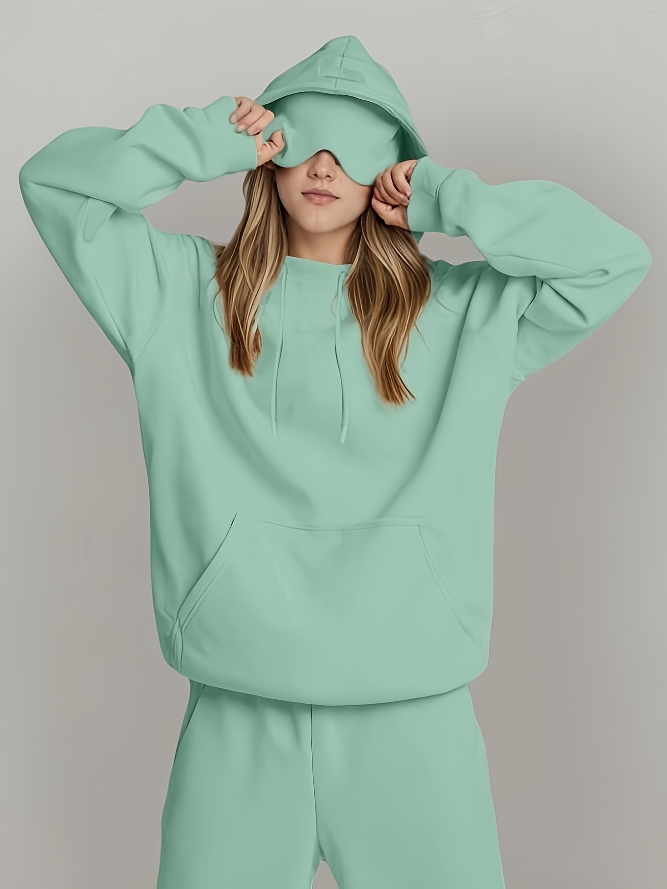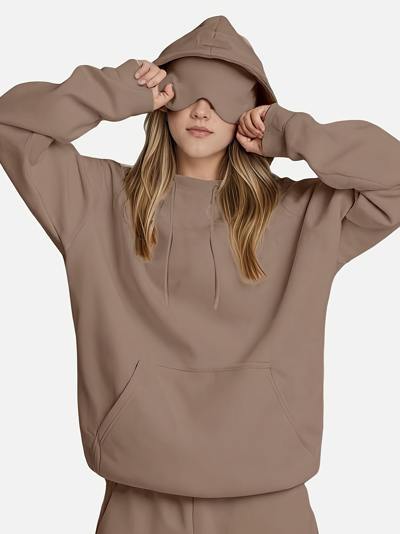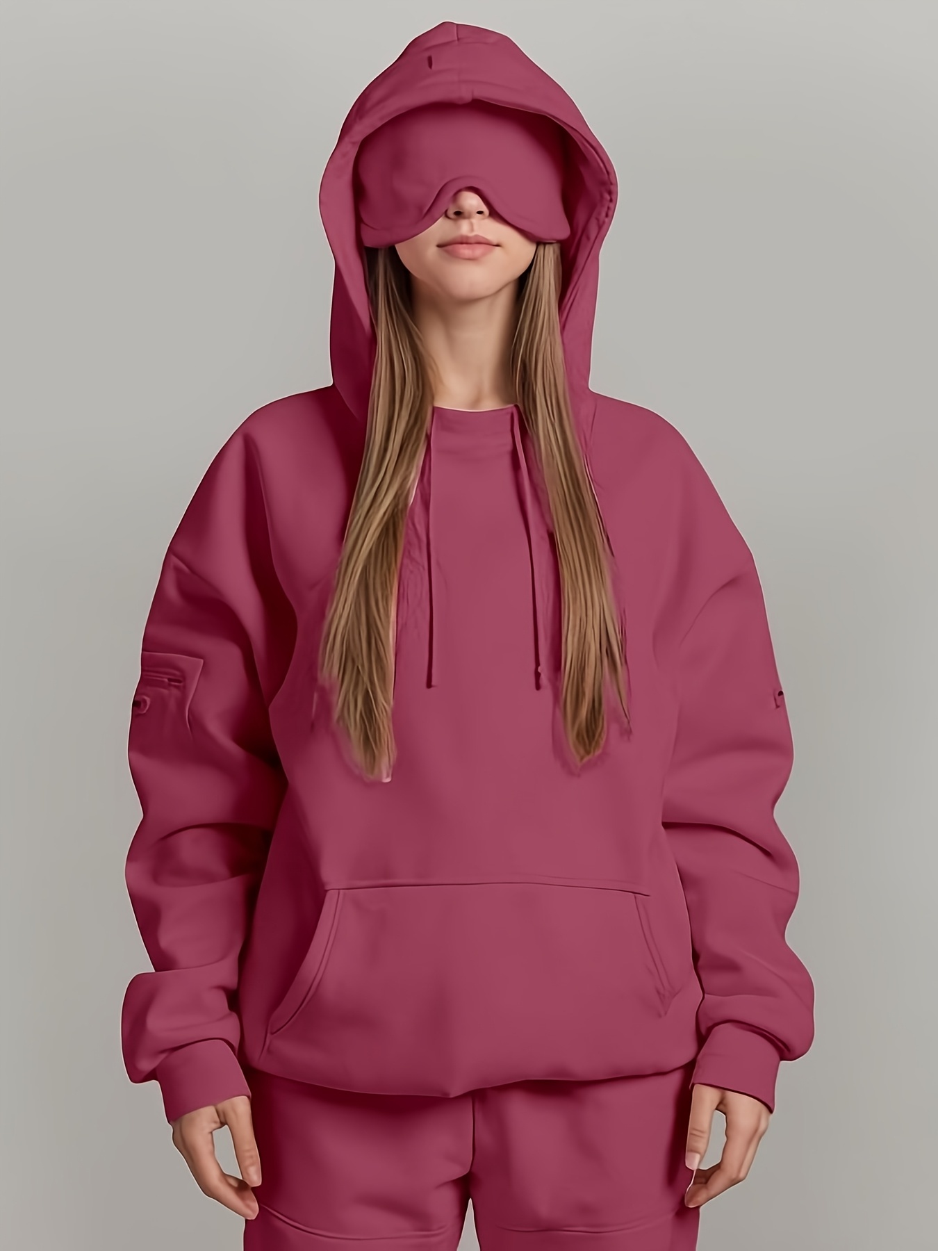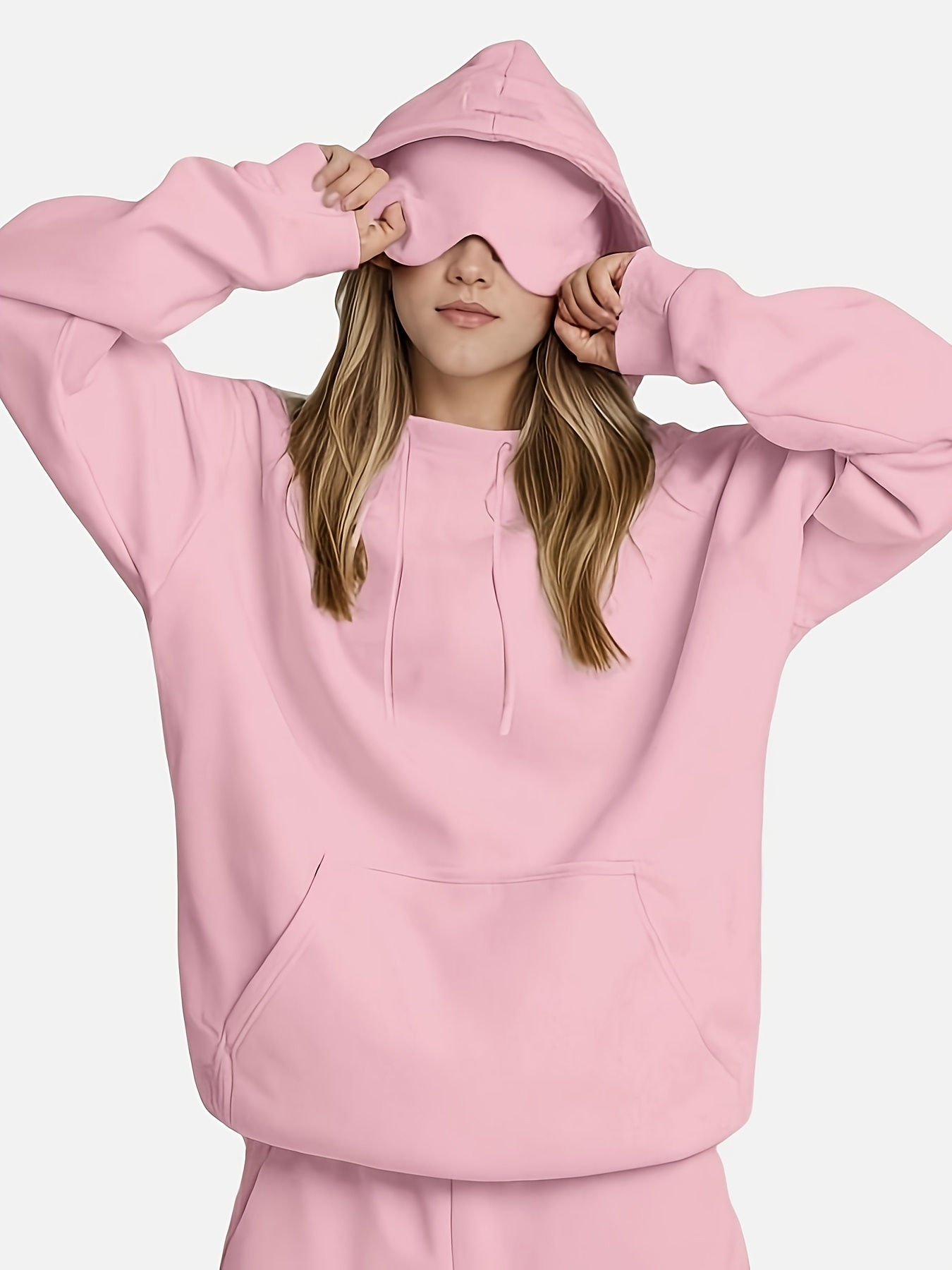 Home Women's Sweatshirts Windproof Winter Travel Hoodie with Eye Mask – Airplane Mode Sleep Cover, Pullover Sweatshirt with Pockets & Adjustable Hood, Machine Washable for flights, trains, buses, trains – Solid Color Casual Winter Wear
