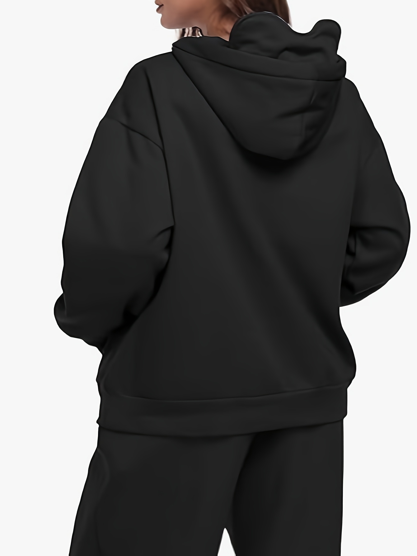YY0718154 Solid Color Drop Shoulder Zip Teddy Hoodie, Women’s Late Autumn Casual Drawstring, Pocket, Zip Long Sleeve Hooded Oversized Regular Drop Shoulder Zip Women’s Hoodie, Long Sleeve Top