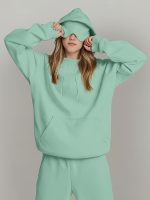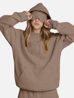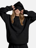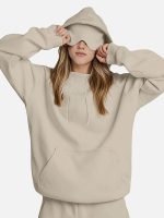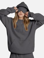 YY0718154 Solid Color Drop Shoulder Zip Teddy Hoodie, Women’s Late Autumn Casual Drawstring, Pocket, Zip Long Sleeve Hooded Oversized Regular Drop Shoulder Zip Women’s Hoodie, Long Sleeve Top