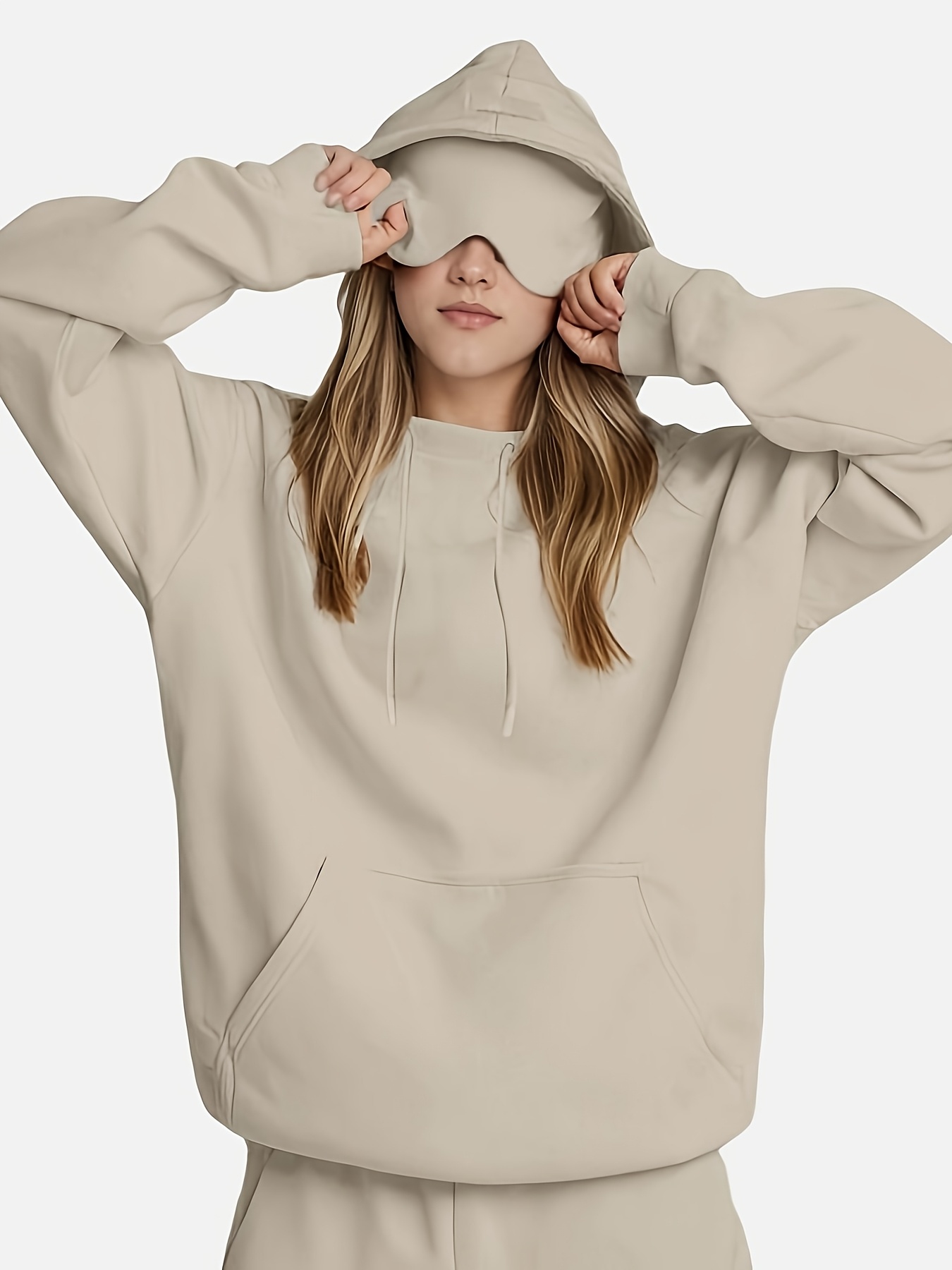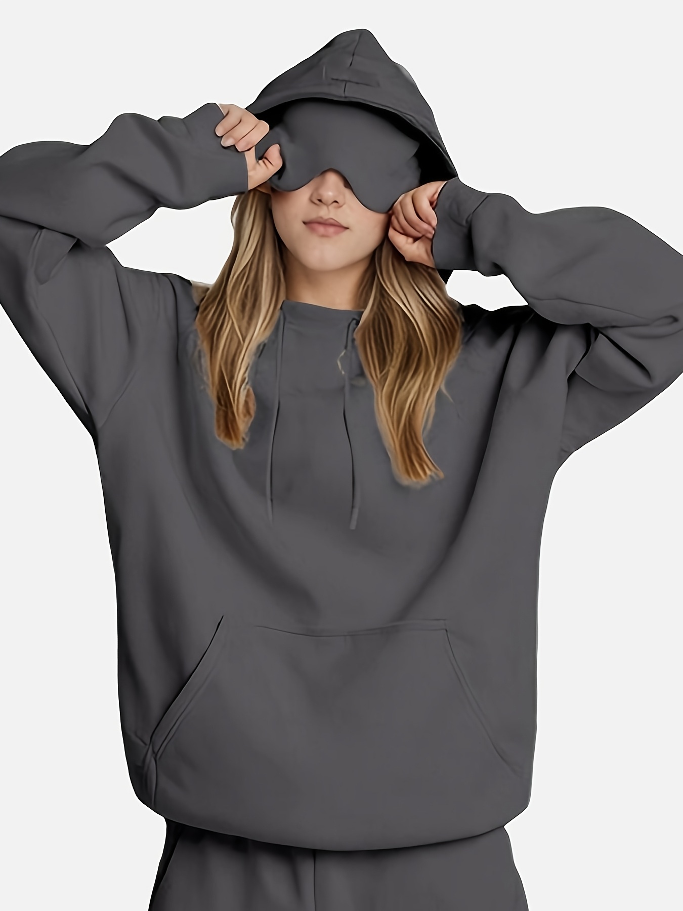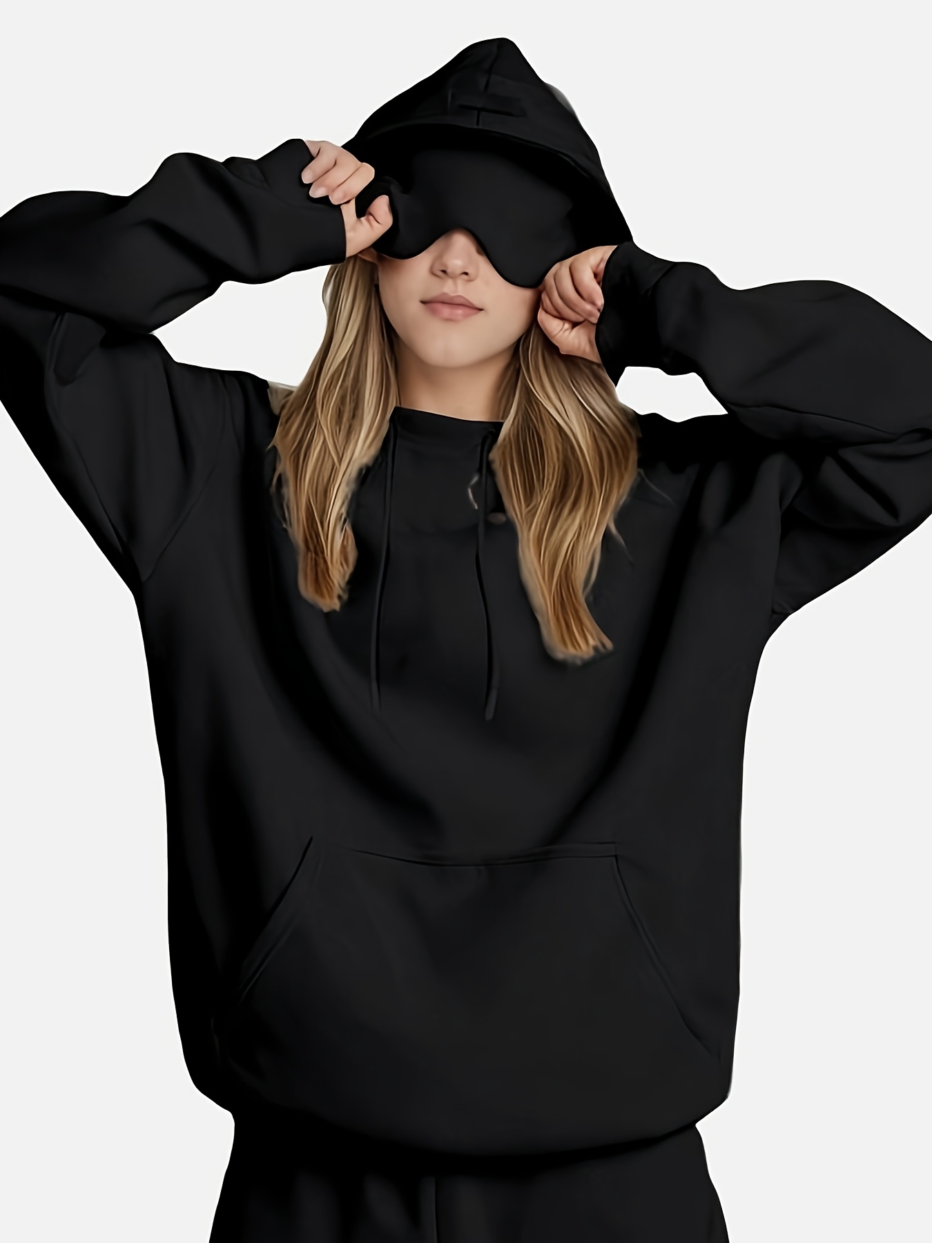 Home Women's Sweatshirts Windproof Winter Travel Hoodie with Eye Mask – Airplane Mode Sleep Cover, Pullover Sweatshirt with Pockets & Adjustable Hood, Machine Washable for flights, trains, buses, trains – Solid Color Casual Winter Wear