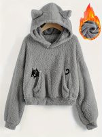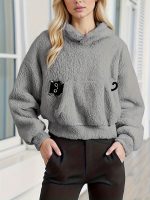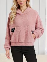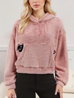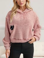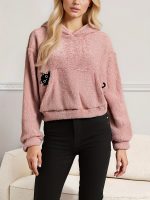 Directional Development of Stylish Women’S Solid Color Fleece Casual Hoodies with Decorative Drawstrings.