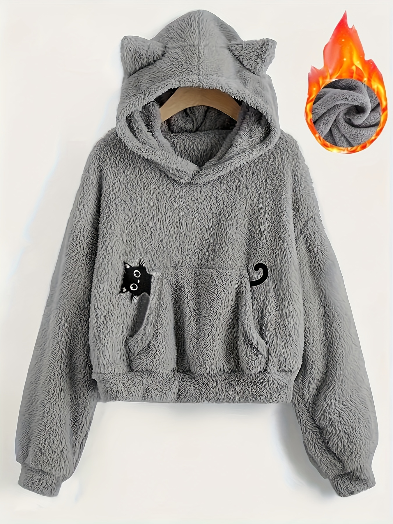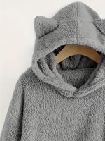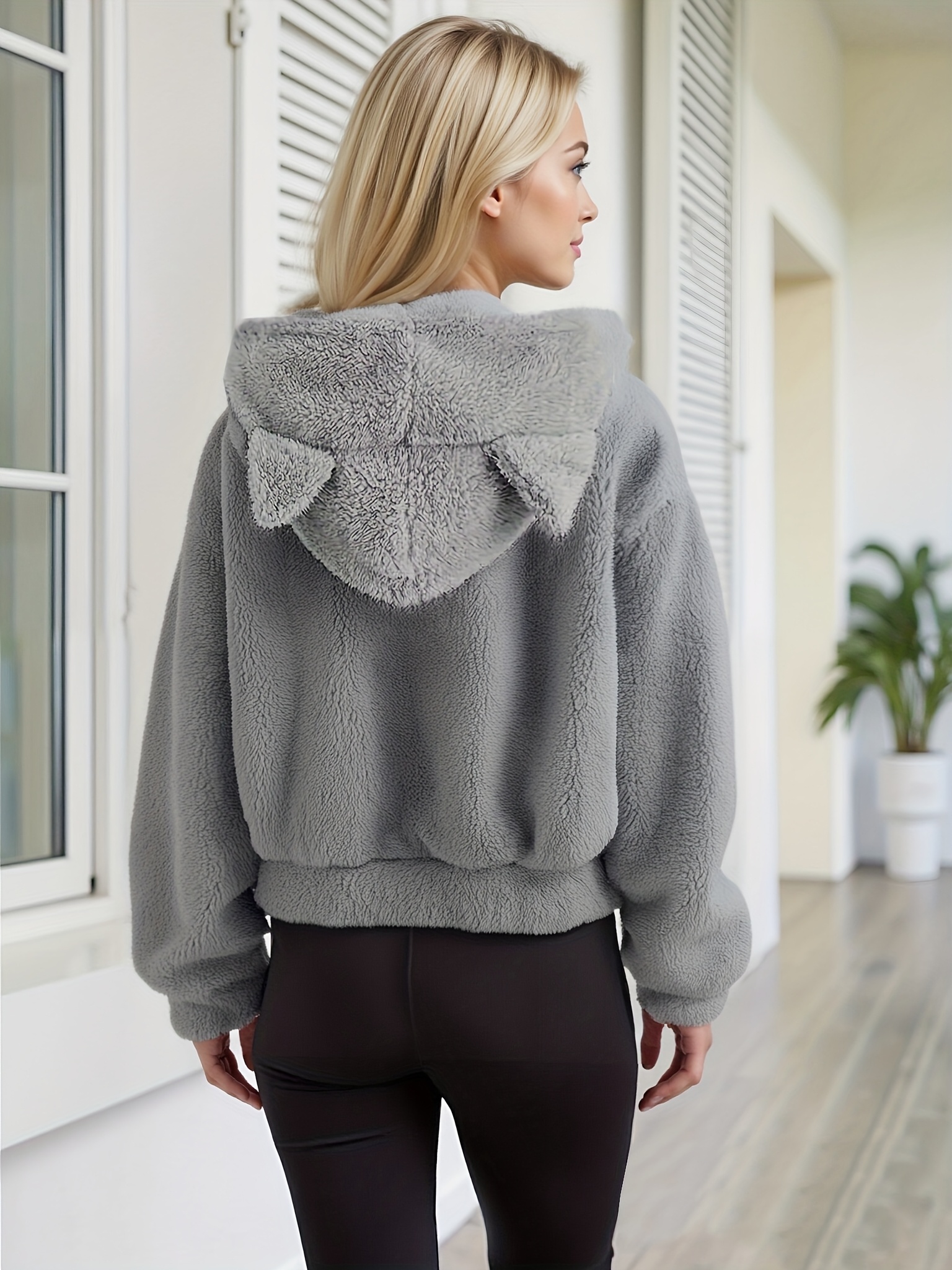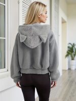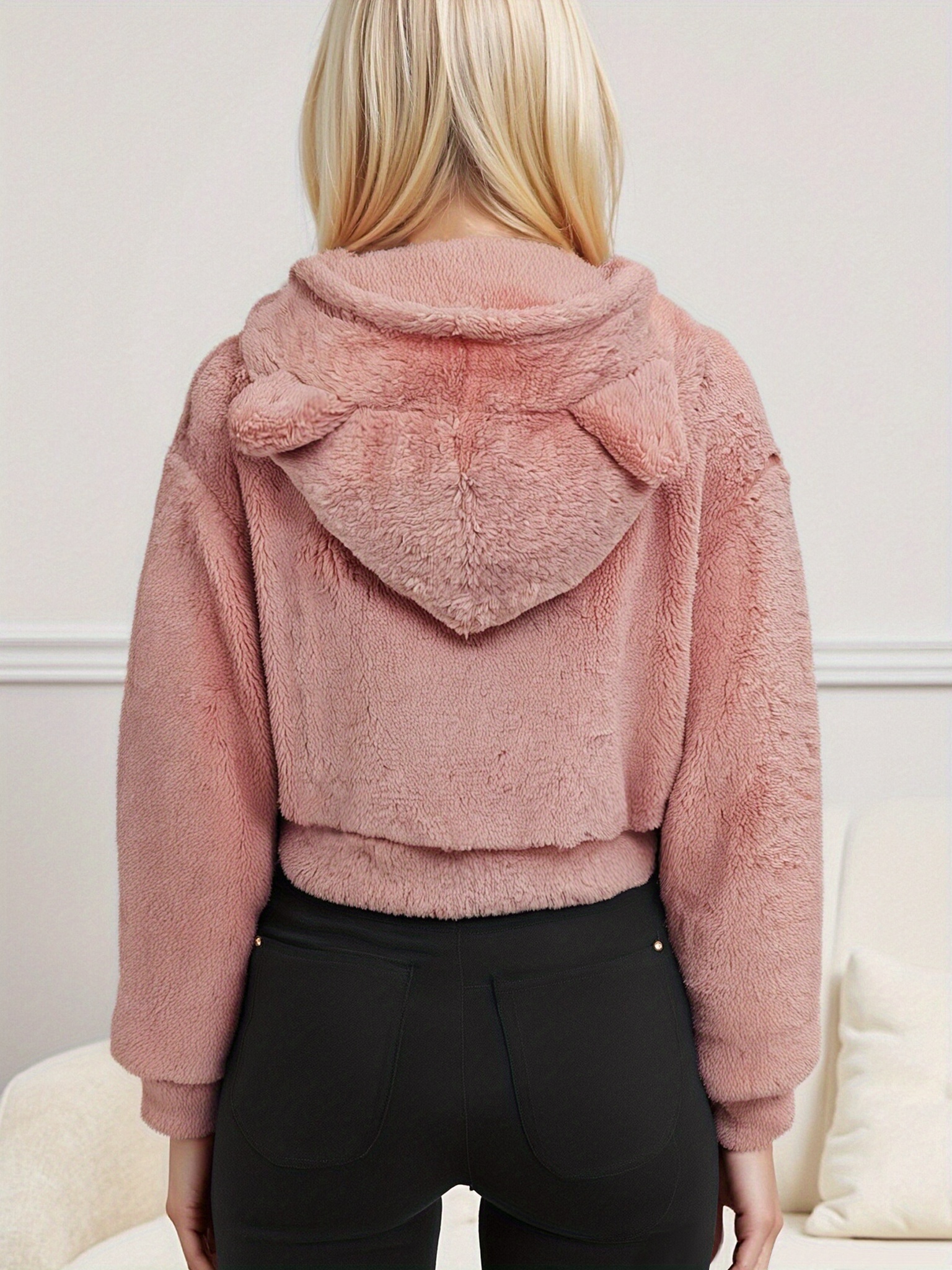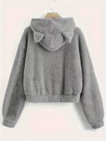 YY0718154 Solid Color Drop Shoulder Zip Teddy Hoodie, Women’s Late Autumn Casual Drawstring, Pocket, Zip Long Sleeve Hooded Oversized Regular Drop Shoulder Zip Women’s Hoodie, Long Sleeve Top