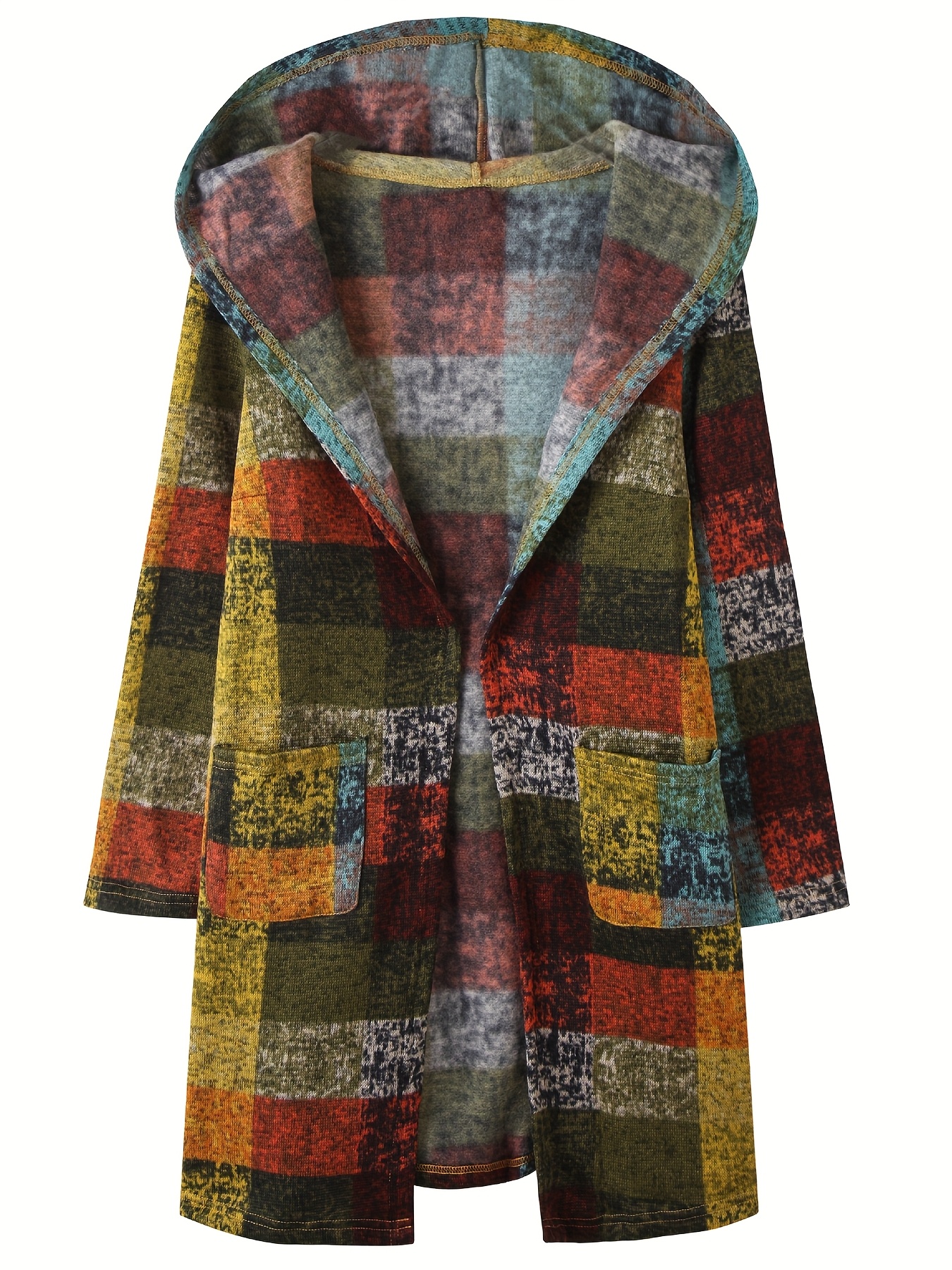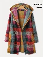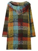 Home Women's Coats & Jackets Women’S Long Hooded Coat with Retro Plaid Print And Open Front.