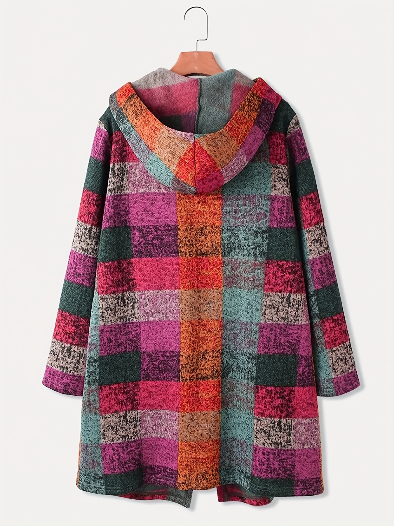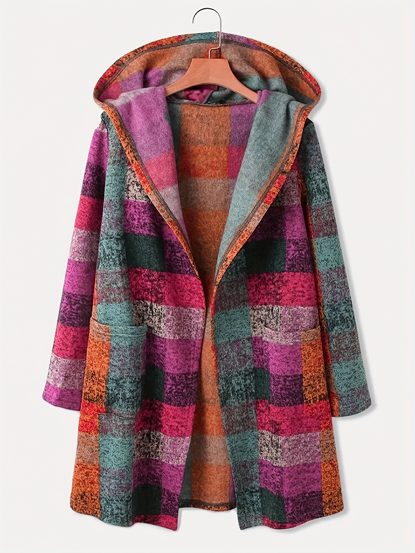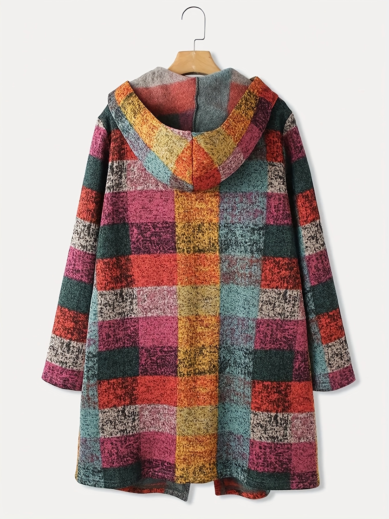 Be the first to review “Women’S Long Hooded Coat with Retro Plaid Print And Open Front.” Cancel reply