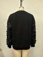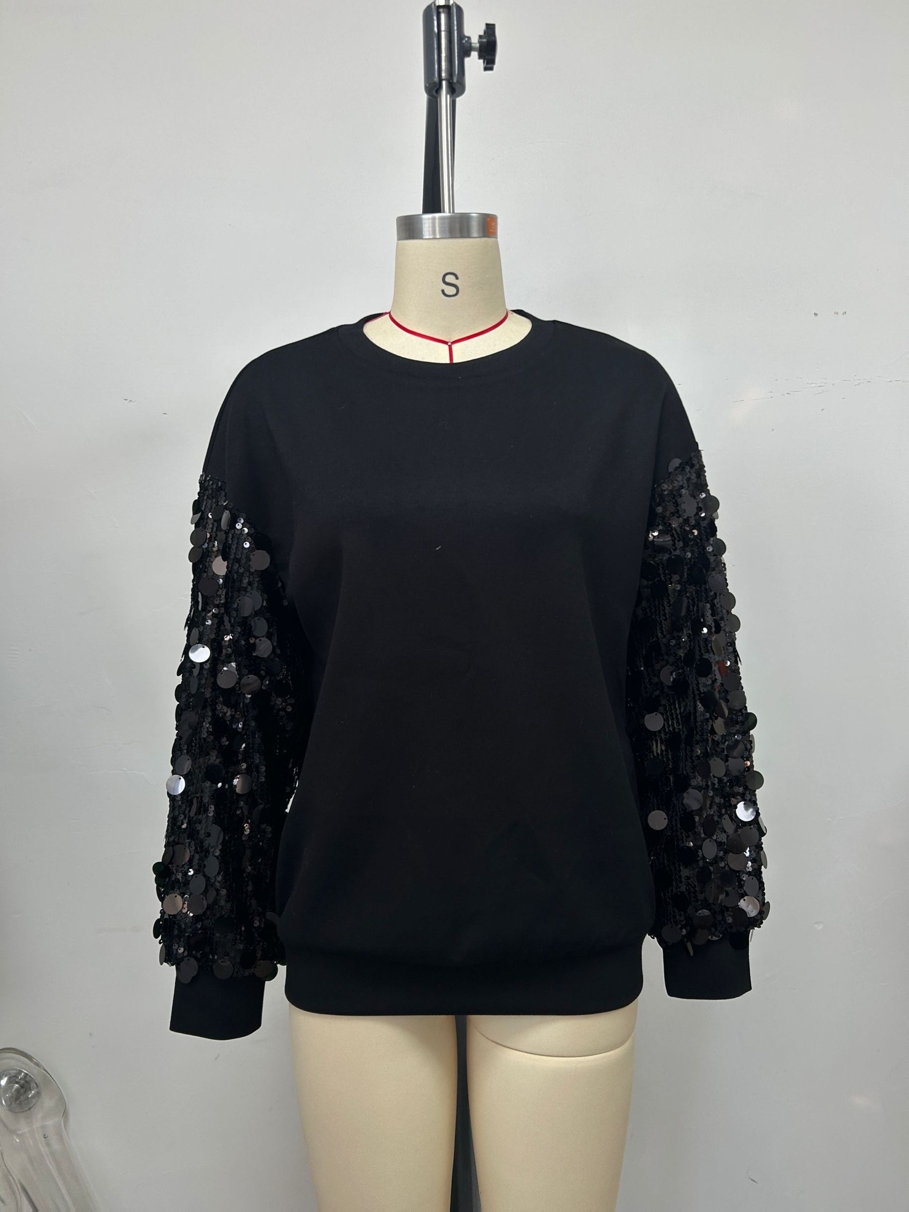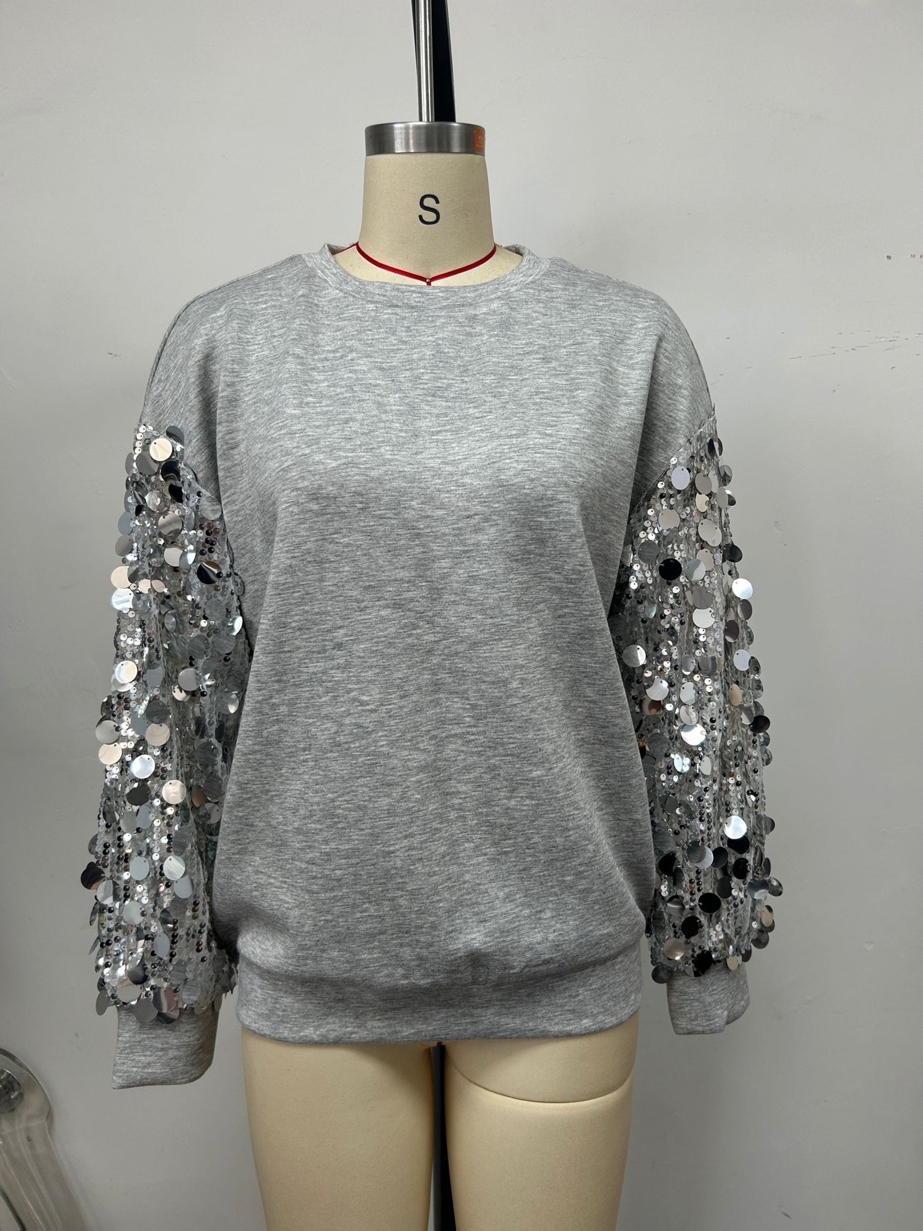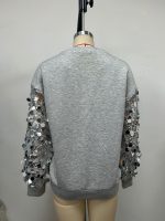 2025 New Elegant Sequin Hooded Sweatshirt – Long Sleeve Machine-Washable Solid Color Top for Springu002FFall, Versatile Casual & Formal Wear