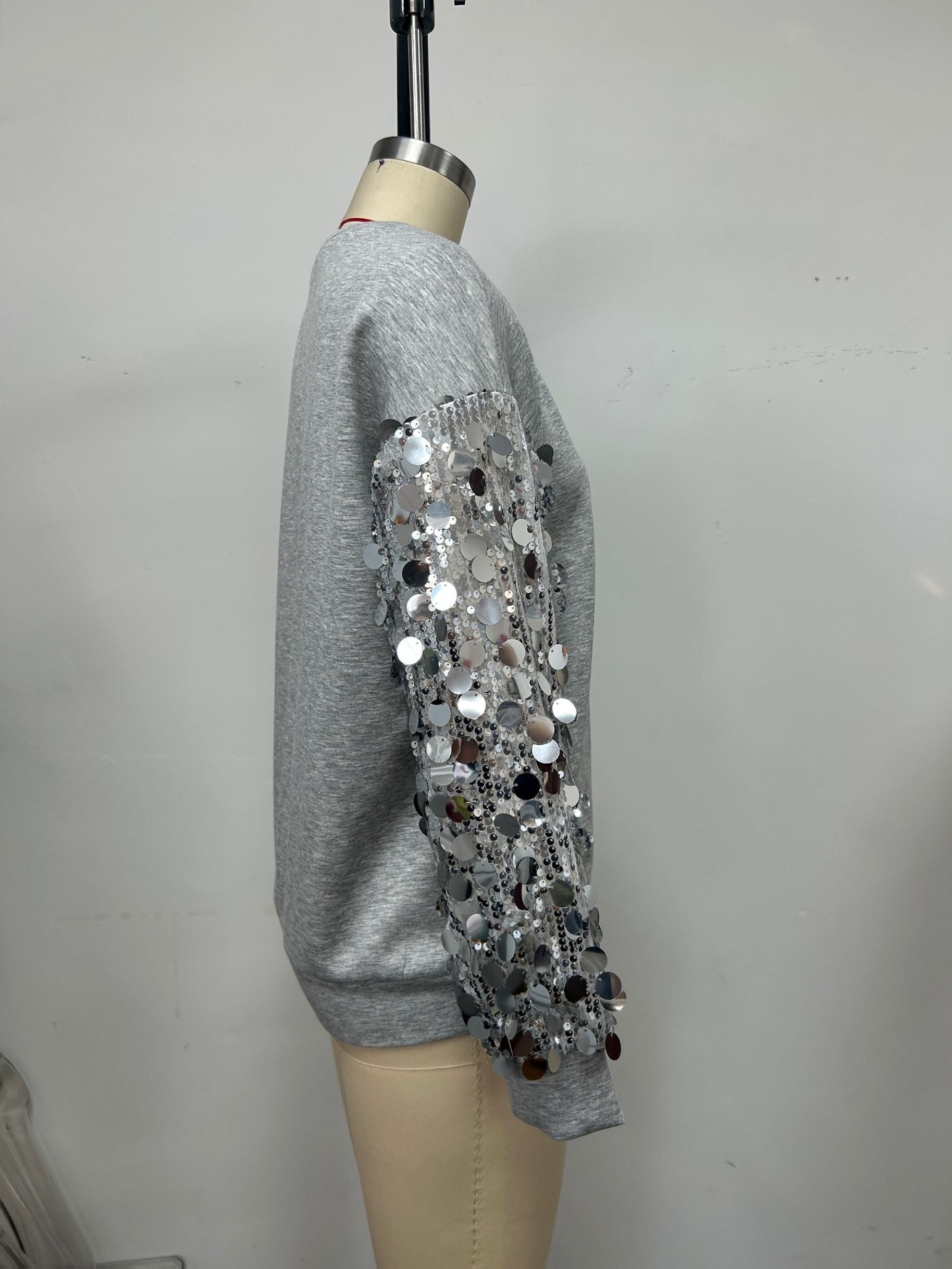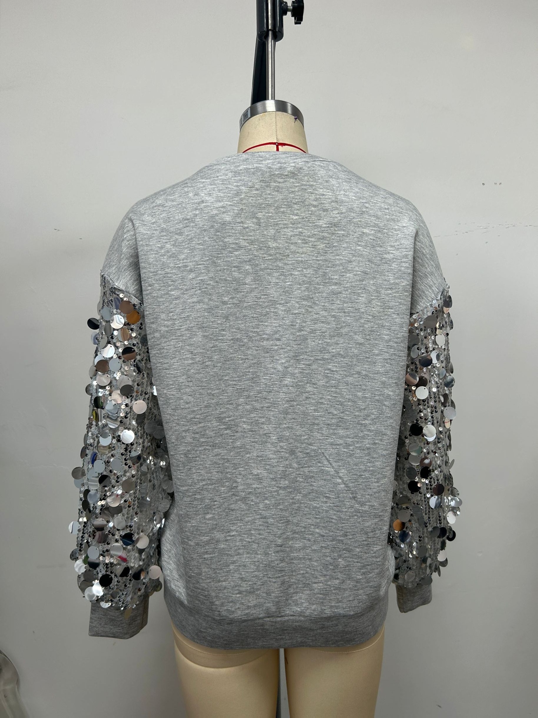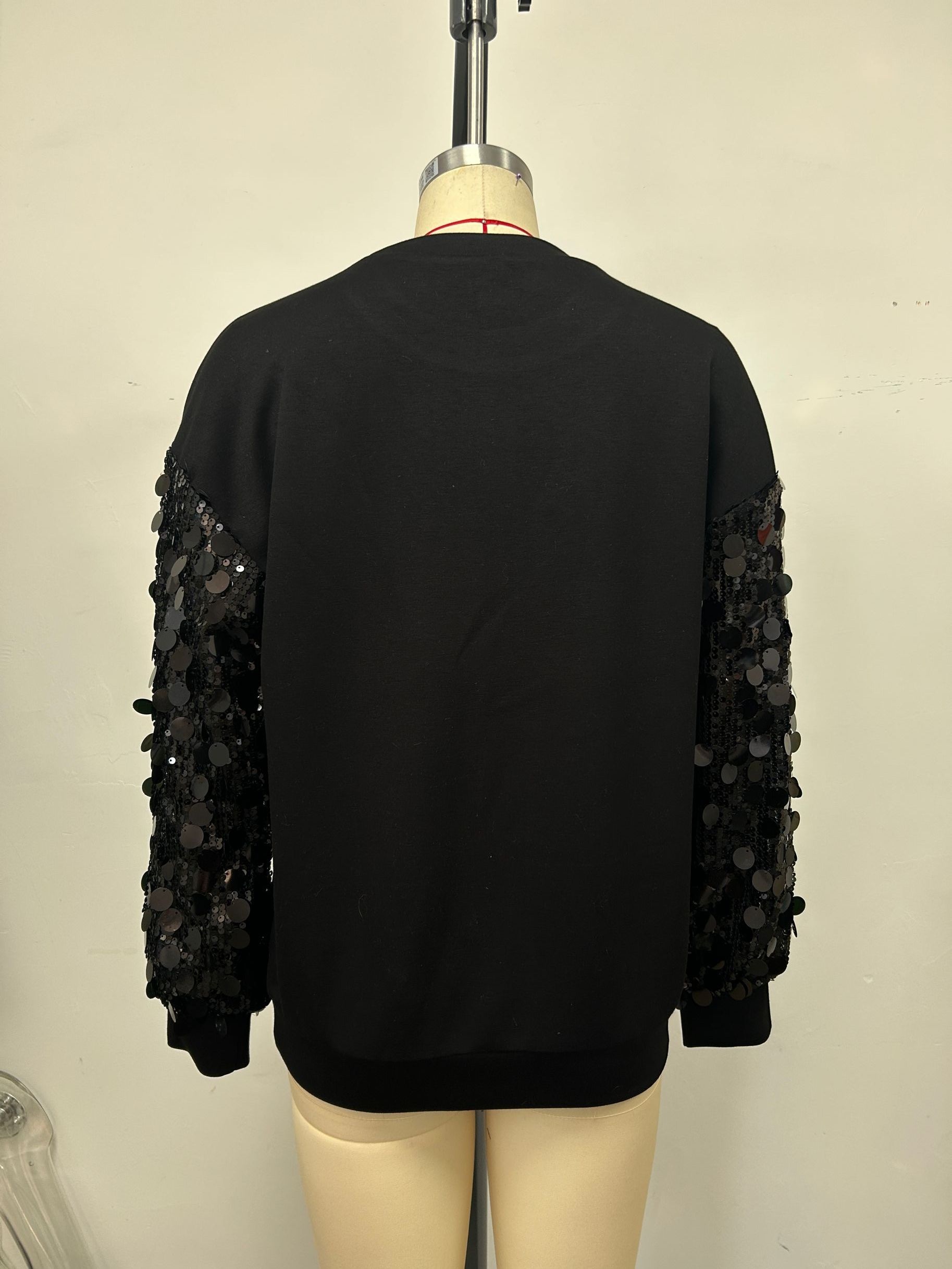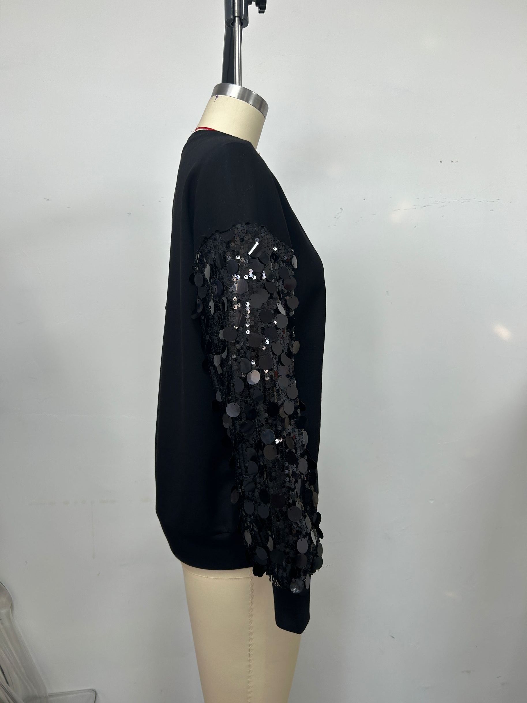 Women’S Red Sweatshirt with Sparkling Sequin Stitching | Drop Shoulder, Lantern Long Sleeve, Crew Neck, Medium Stretch Fabric, Suitable for Christmas Parties, Outings, and Dates