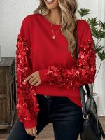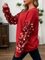Home Women's Sweatshirts Women’S Red Sweatshirt with Sparkling Sequin Stitching | Drop Shoulder, Lantern Long Sleeve, Crew Neck, Medium Stretch Fabric, Suitable for Christmas Parties, Outings, and Dates